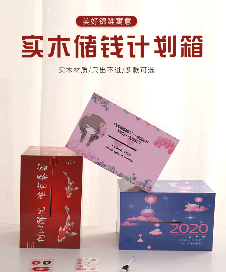 今日推荐:365天存钱计划箱抖音同款存钱罐只进不出储钱罐可爱儿童储蓄罐,美好锦鲤寓意,美好锦鲤寓意,实木材质/只出不进/多款可选