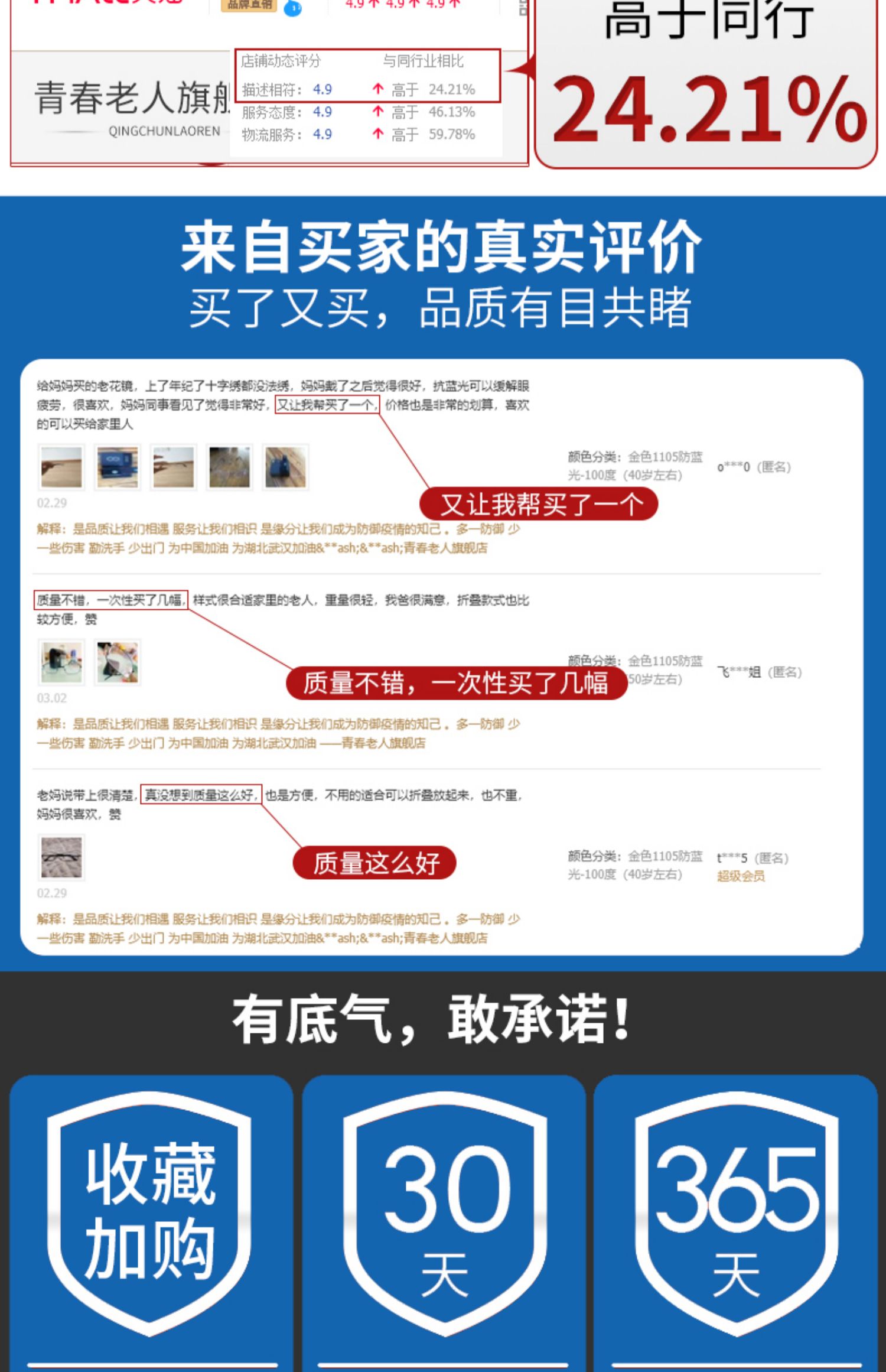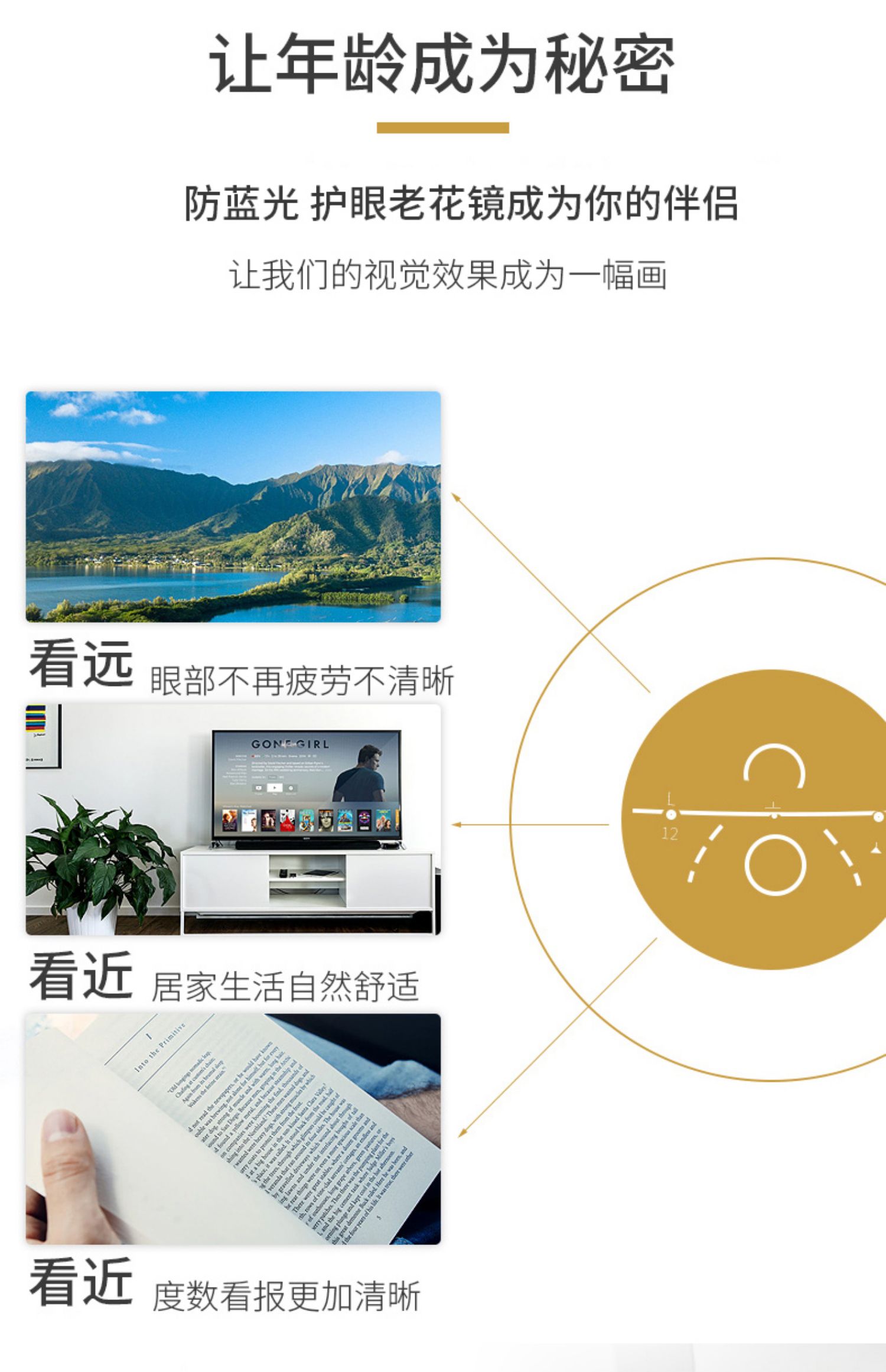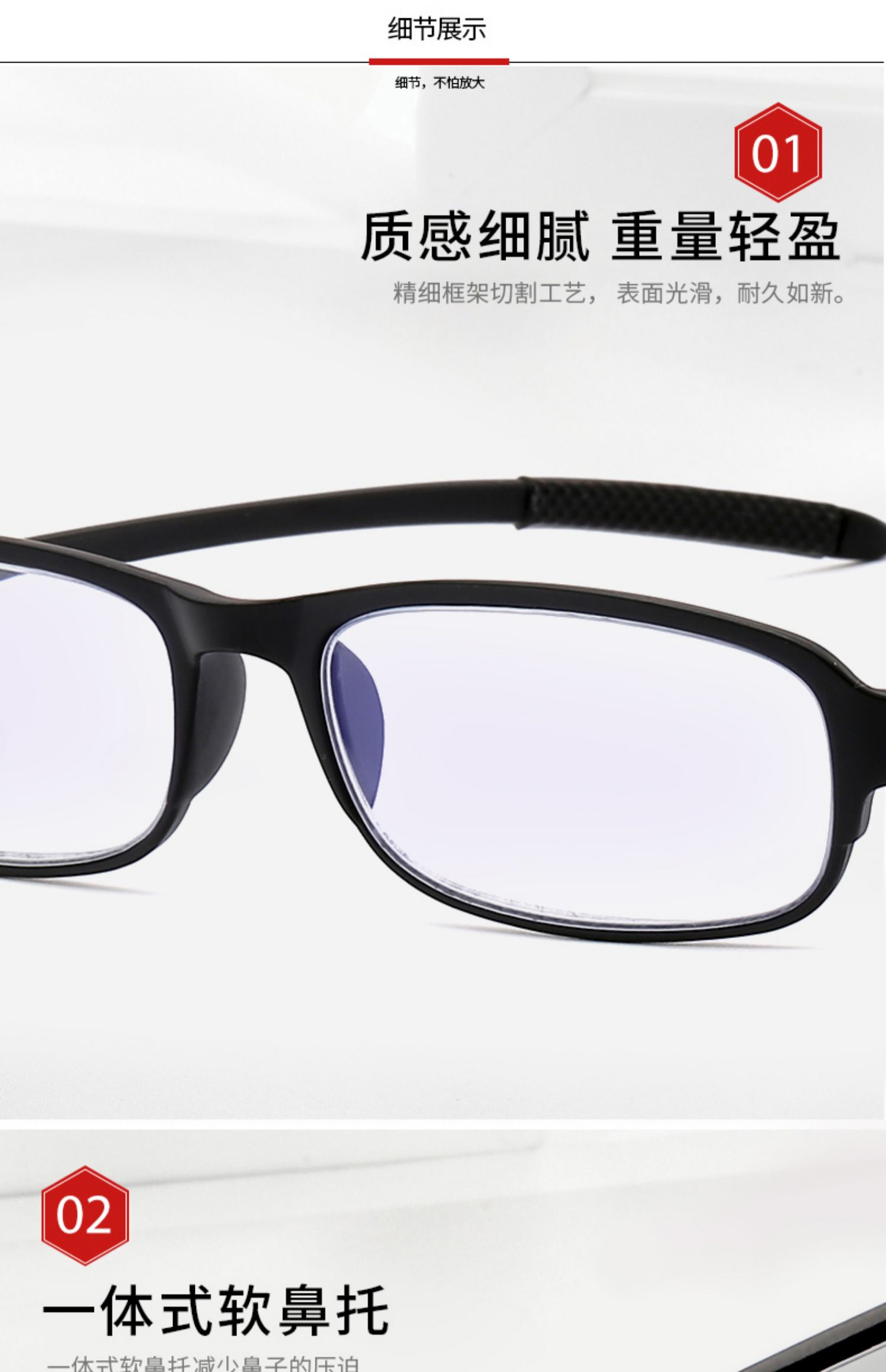 耐磨轻巧,360度不弯曲,佩戴舒适,不夹脸不压鼻,男女通用!防辐射,防蓝光,防紫外线,呵护老人健康,送爸妈送长辈很温馨!