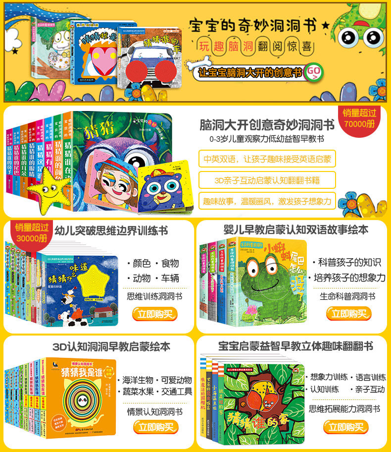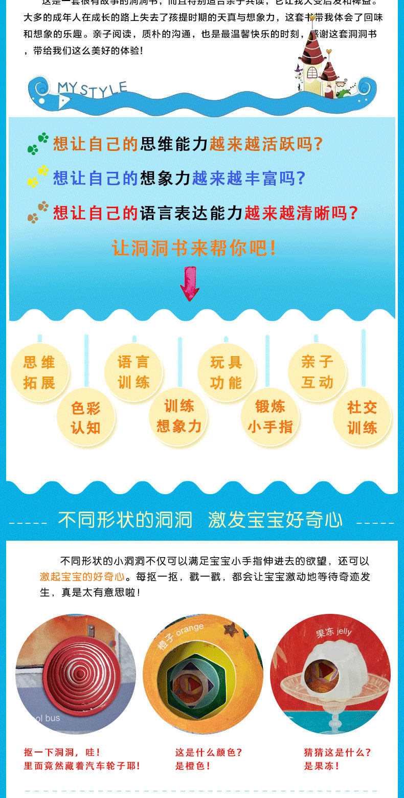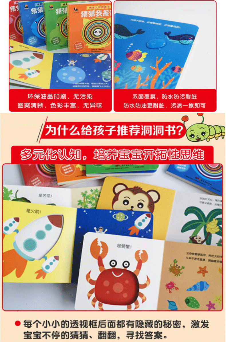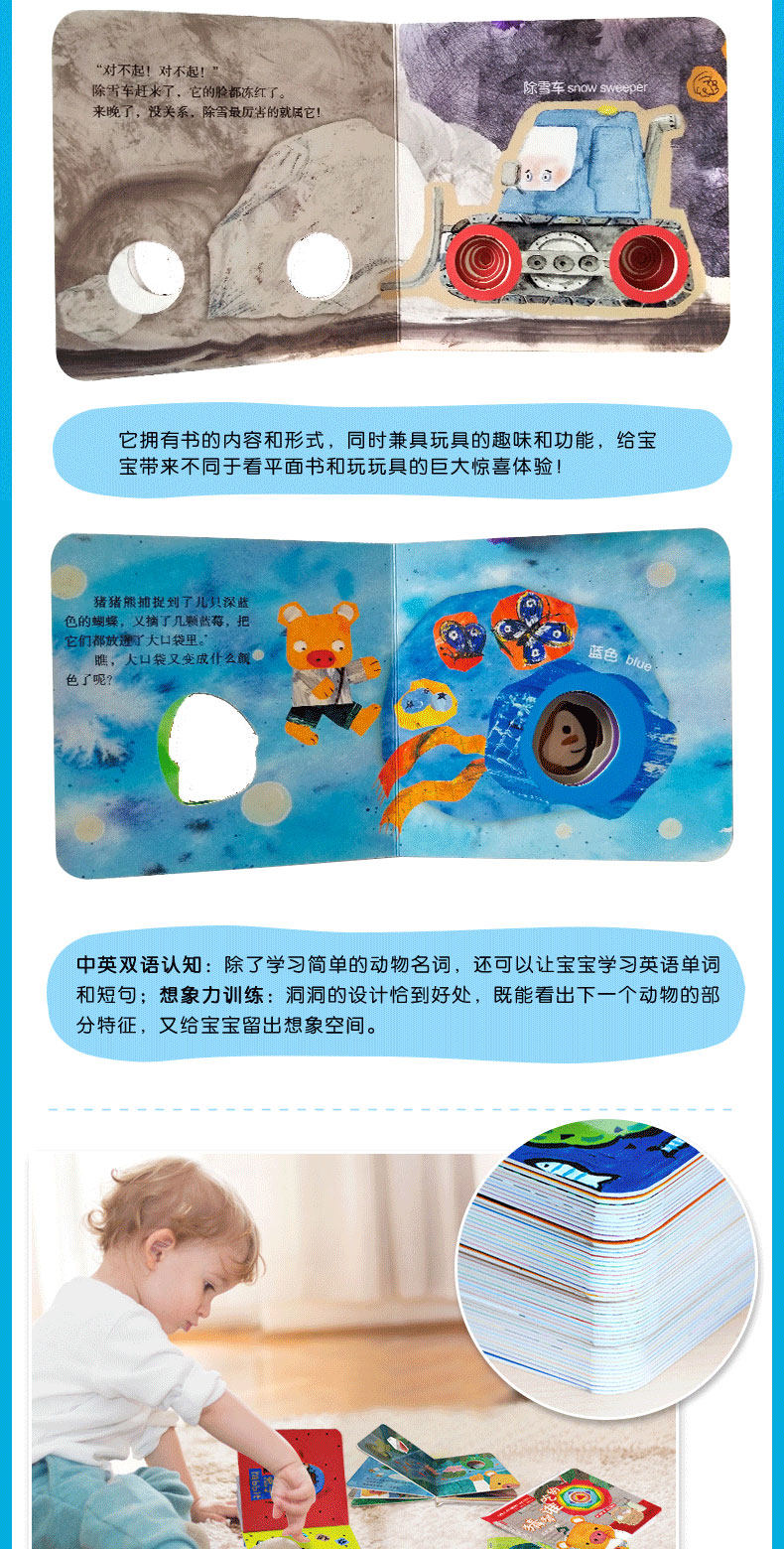 【随机发4本】0-3周岁婴儿早教低幼启蒙3D洞洞书,培养原创绘本故事,训练孩子语言