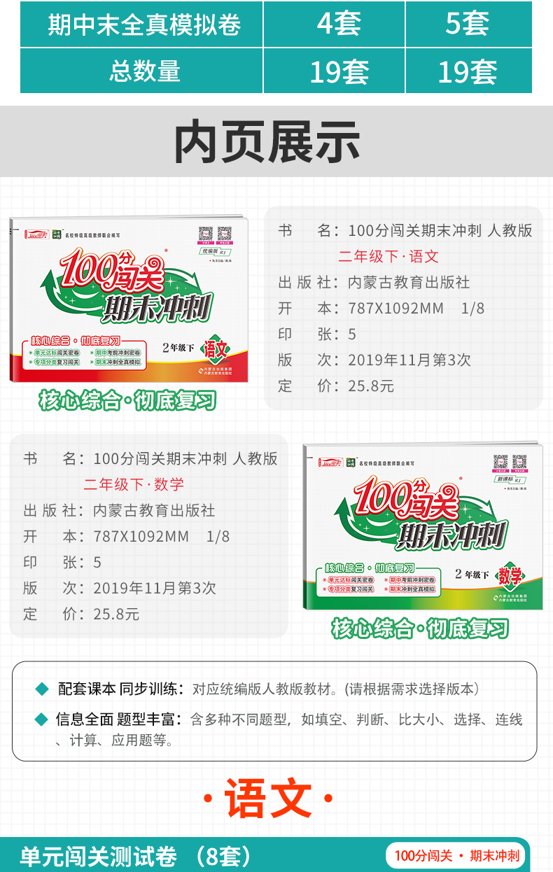 【语文19套,数学19套】单元闯关+期中期末+专项冲剂,同步教材,针对训练。题型丰富,内容新颖。帮助孩子,巩固提升。重点难点专项提升,让孩子赢在起跑线上【赠运费险】