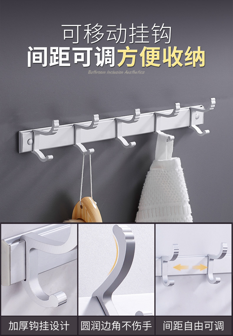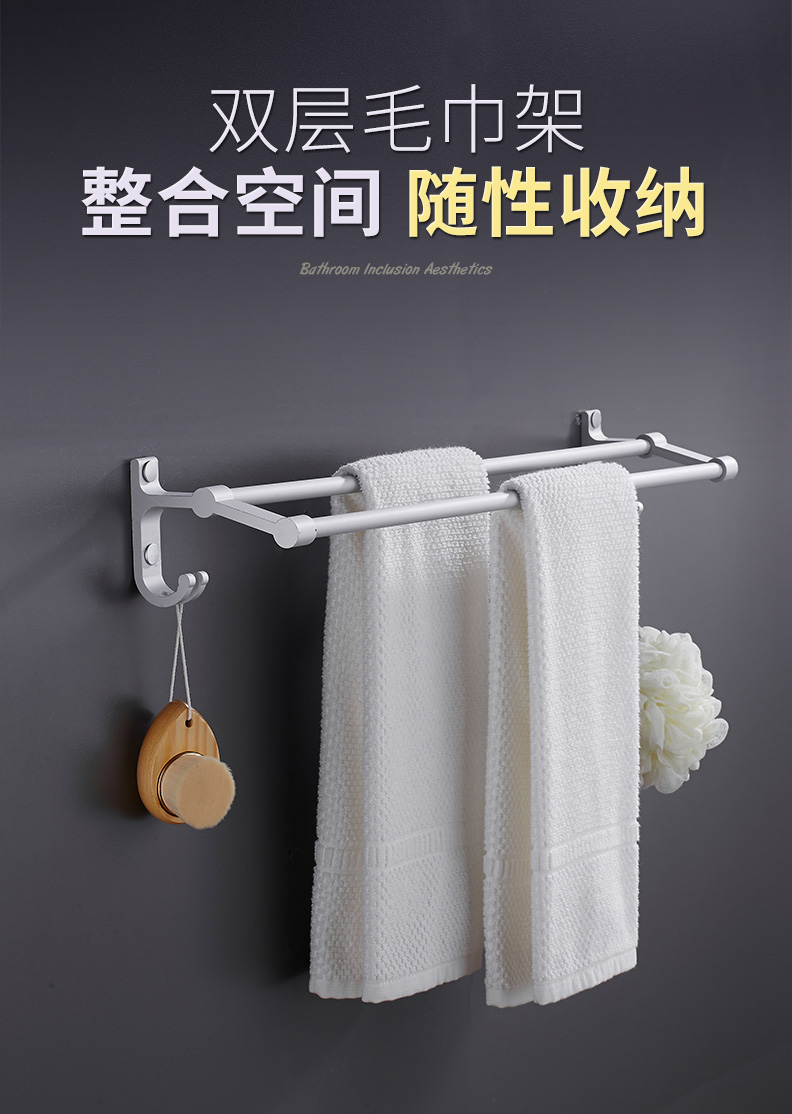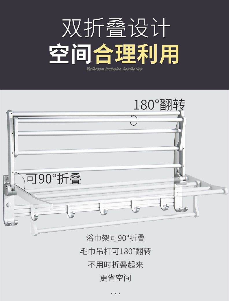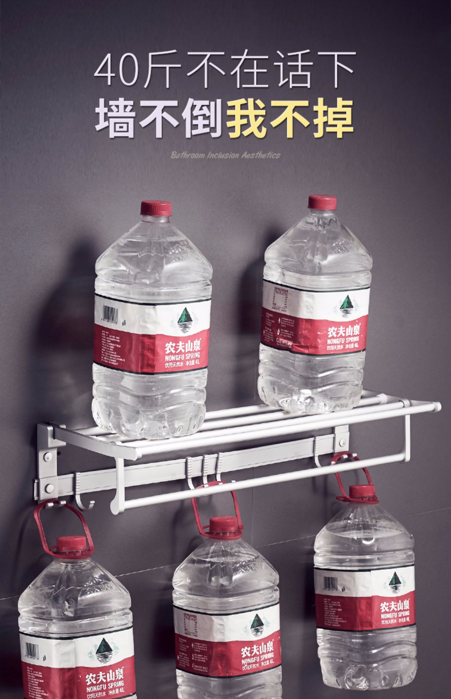 【毛巾架还可以当拖鞋架哟】实心加厚,承重强,抗腐蚀,优质铝合金,耐用不生锈,免打孔(不可打孔),解决浴室杂乱,轻松hold住48斤的重量,适用各种墙面!【赠运费险】