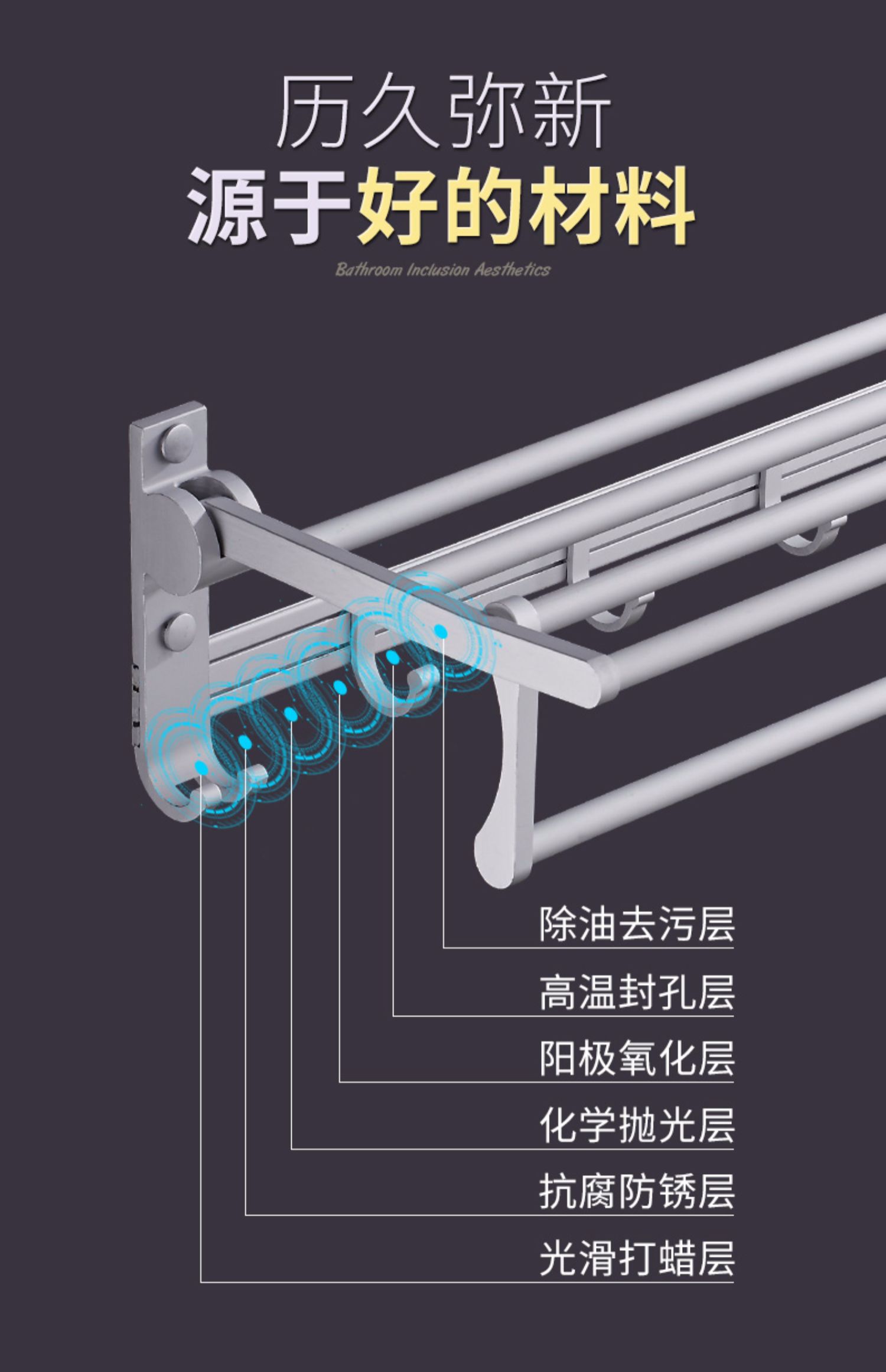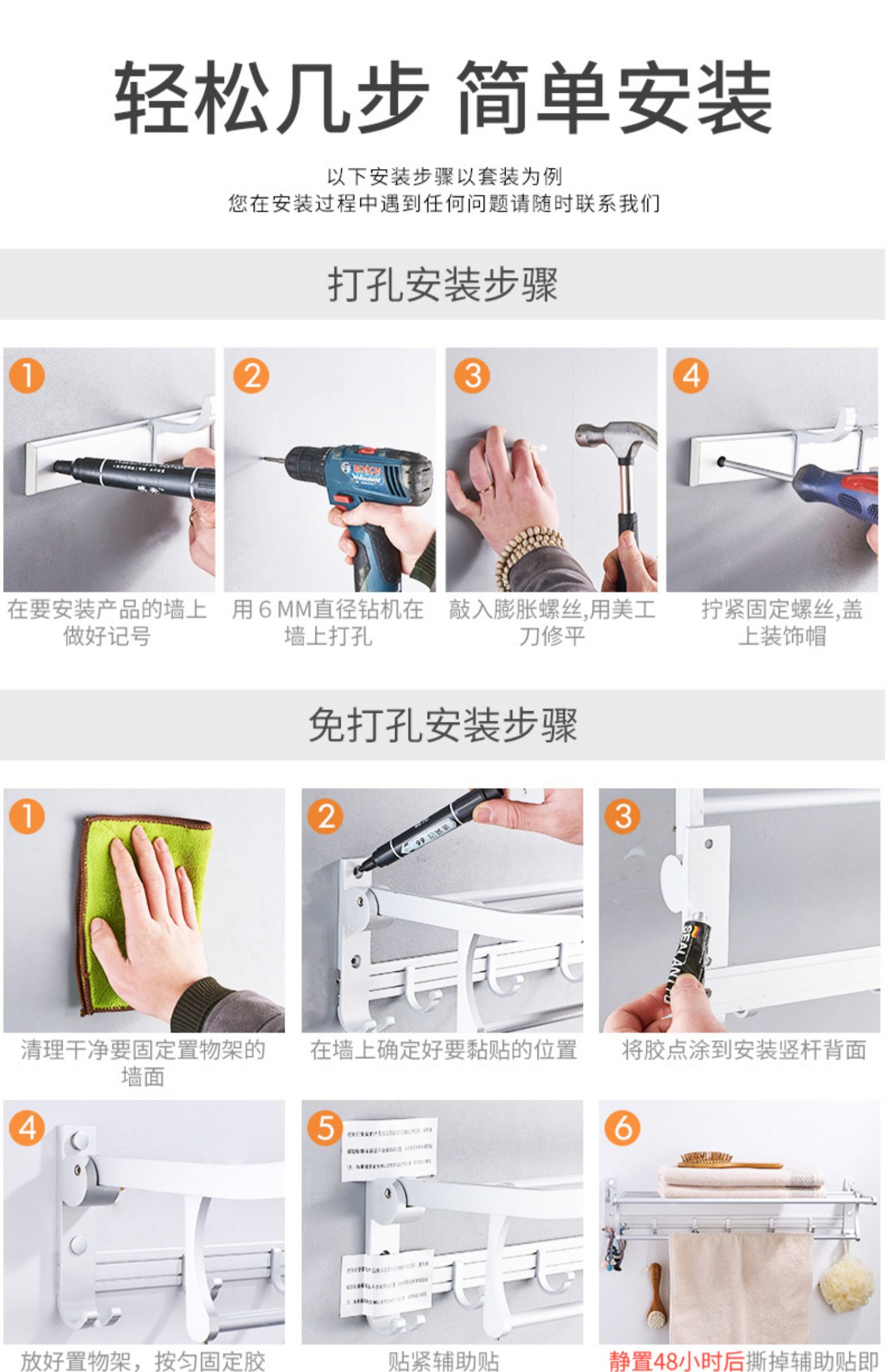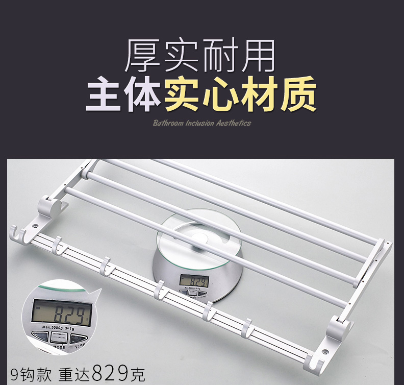 【毛巾架还可以当拖鞋架哟】实心加厚,承重强,抗腐蚀,优质铝合金,耐用不生锈,免打孔(不可打孔),解决浴室杂乱,轻松hold住48斤的重量,适用各种墙面!【赠运费险】