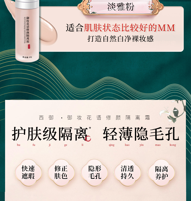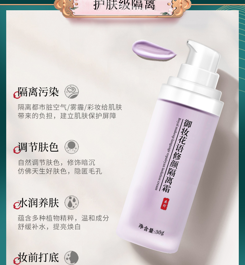御妆花语修颜隔离,滋润女学生党平价,防护隔离,调理肤色,丝滑水润质地,清爽不油腻,遮瑕,隔离,妆前打底,修饰肤色,修颜