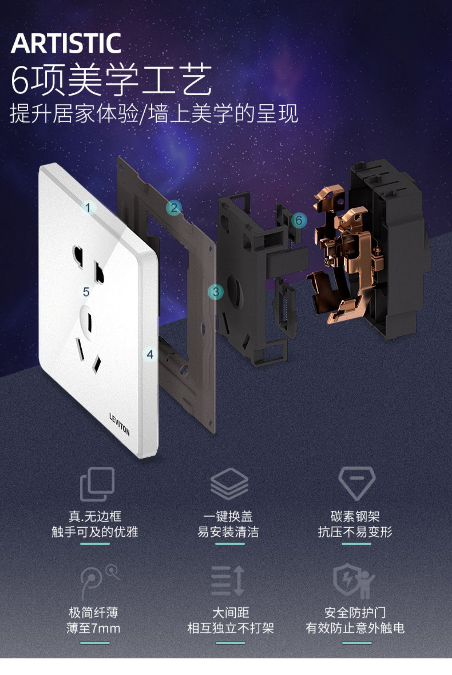 【1.9元】包邮秒杀!天猫抽检,品质保证!美国进口,立维腾家用暗装开关插座面板,86型五孔插座,多孔带开关usb扦座,PC阻燃盖板,儿童保护门设计,精密内件,国际级PC后座,从颜值到品质都无可挑剔。