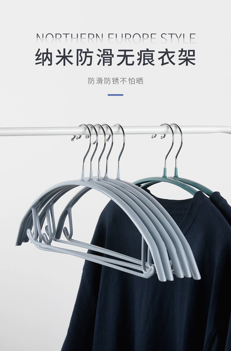 纳米防滑无痕凉晒衣架子5只