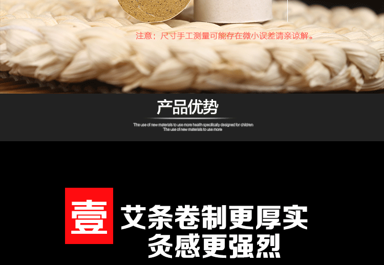 精选优质十年陈艾绒,有效去湿气、缓解劳累、舒筋活络、保健养生,燃烧充分,男女老少皆宜,艾烟多而厚,充分渗入经络有效帮您缓解颈椎,腰椎病,腿部,妇科宫寒痛经等功效,安神解疲安全放心灸!