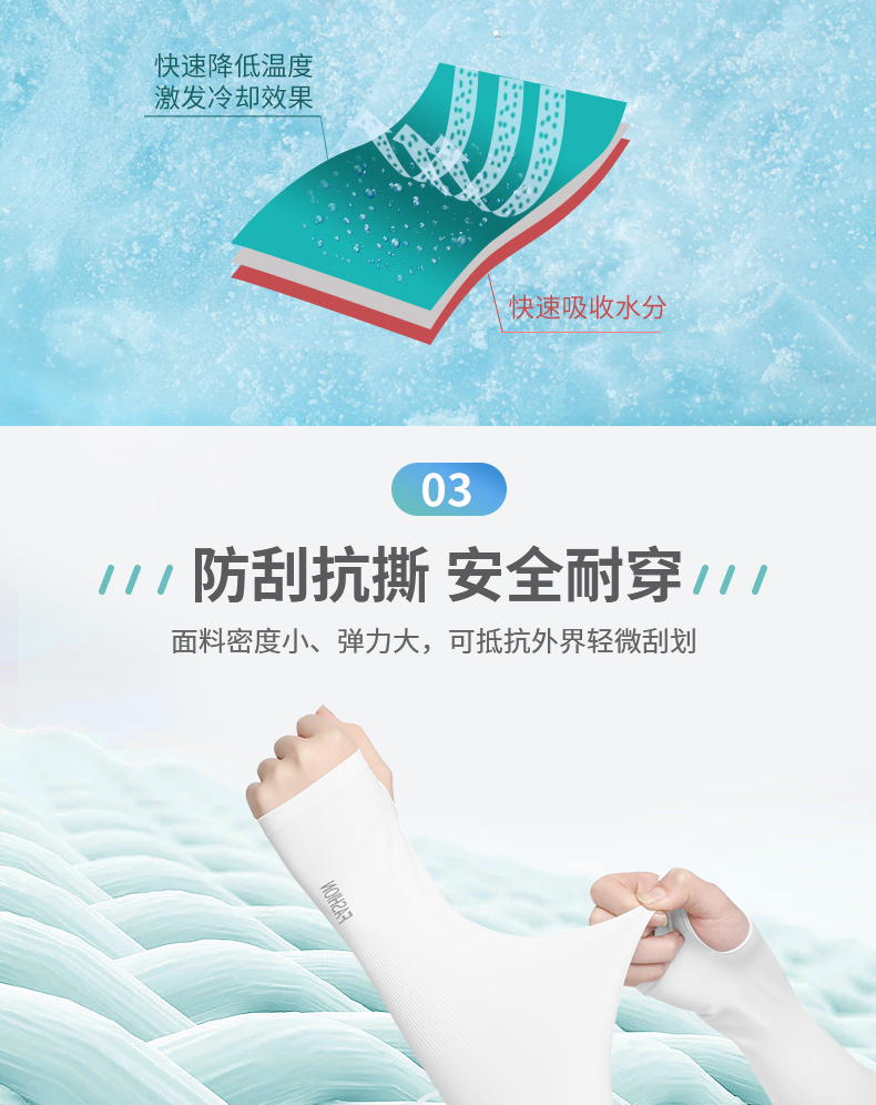 高端冰丝材质,抗紫外线、吸湿排汗强,穿上这个防晒冰袖,温度可以立减5℃,肌肤上的防晒问题就交给它了!