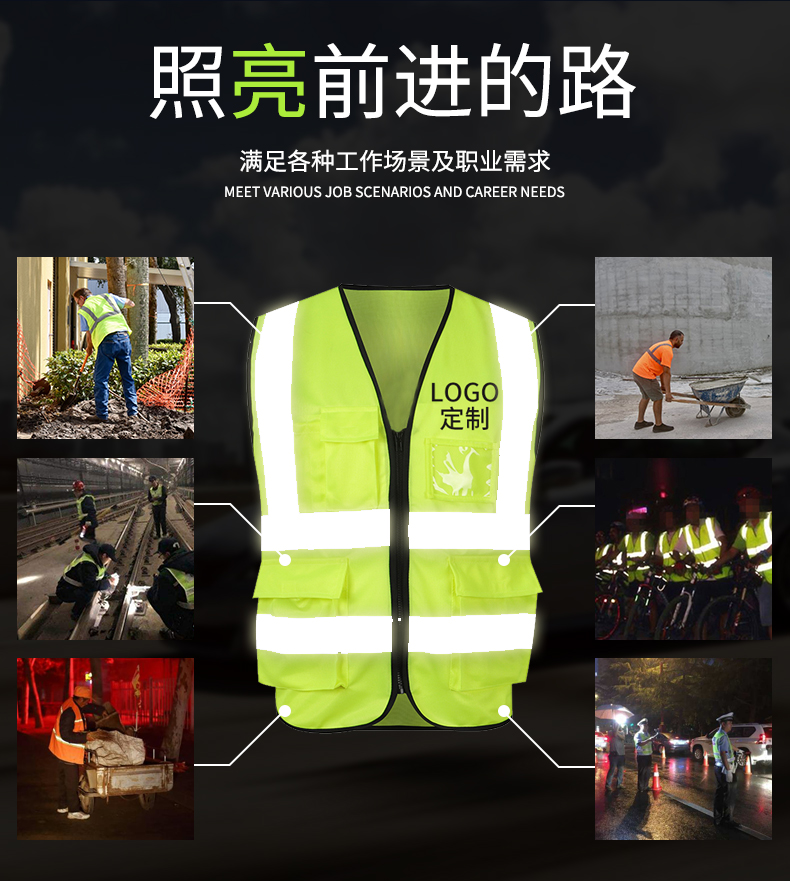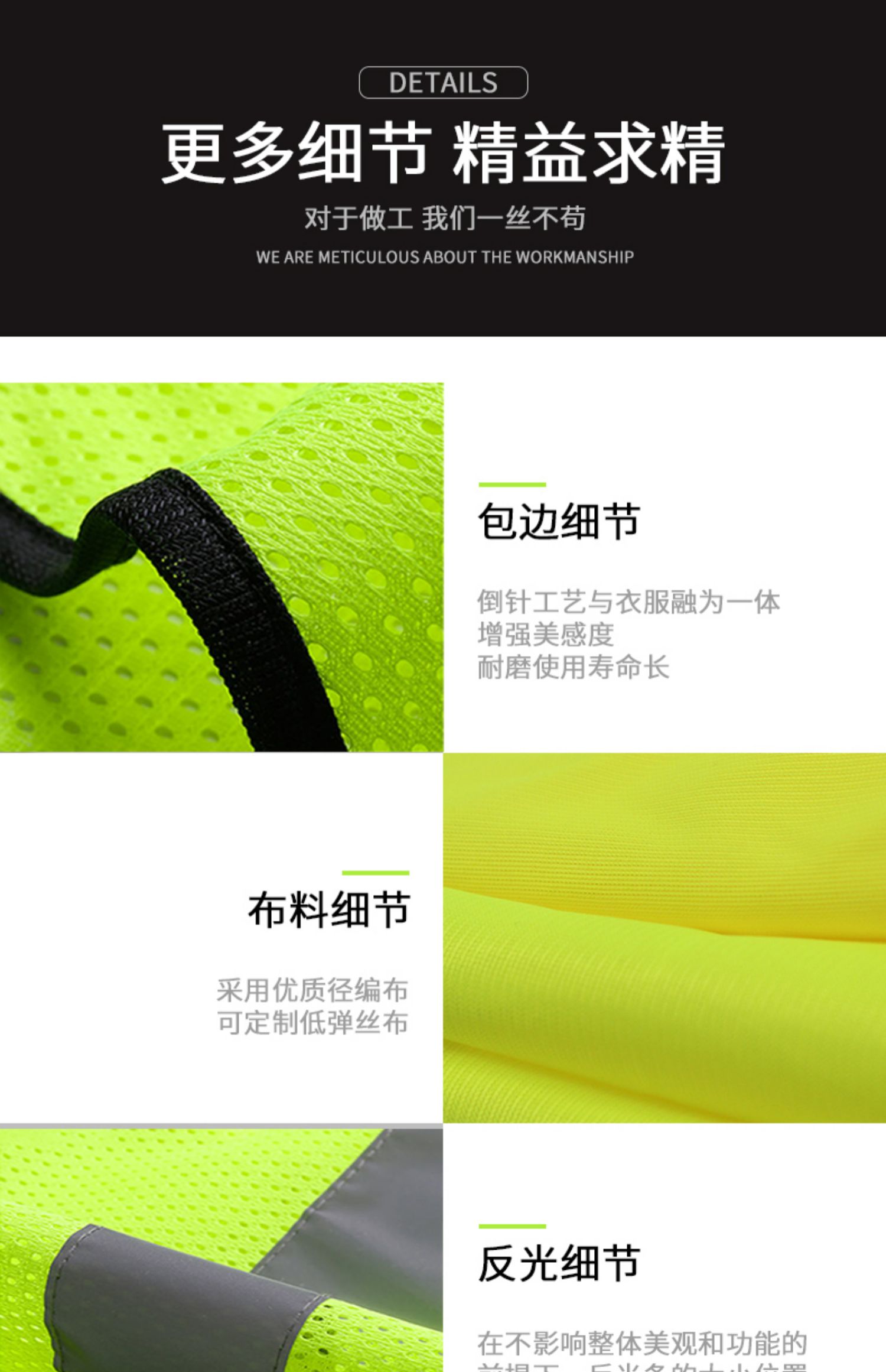 夜晚反光,保护安全,适合多种用途。多功能口袋,高亮反光条。选用120G低弹丝布料,透气从外到内,轻盈舒适,经久耐穿。