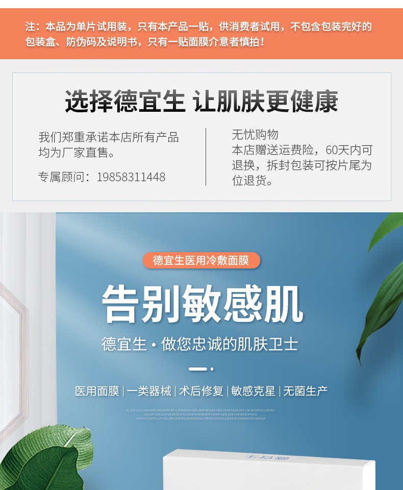 【拍1发3】医用级面膜,一类器械,术后修复,无菌生产,无添加。敏感肌克星,无激素,无依赖性,不刺激,不过敏!专业治疗激素依赖性皮炎。【赠送运费险】
