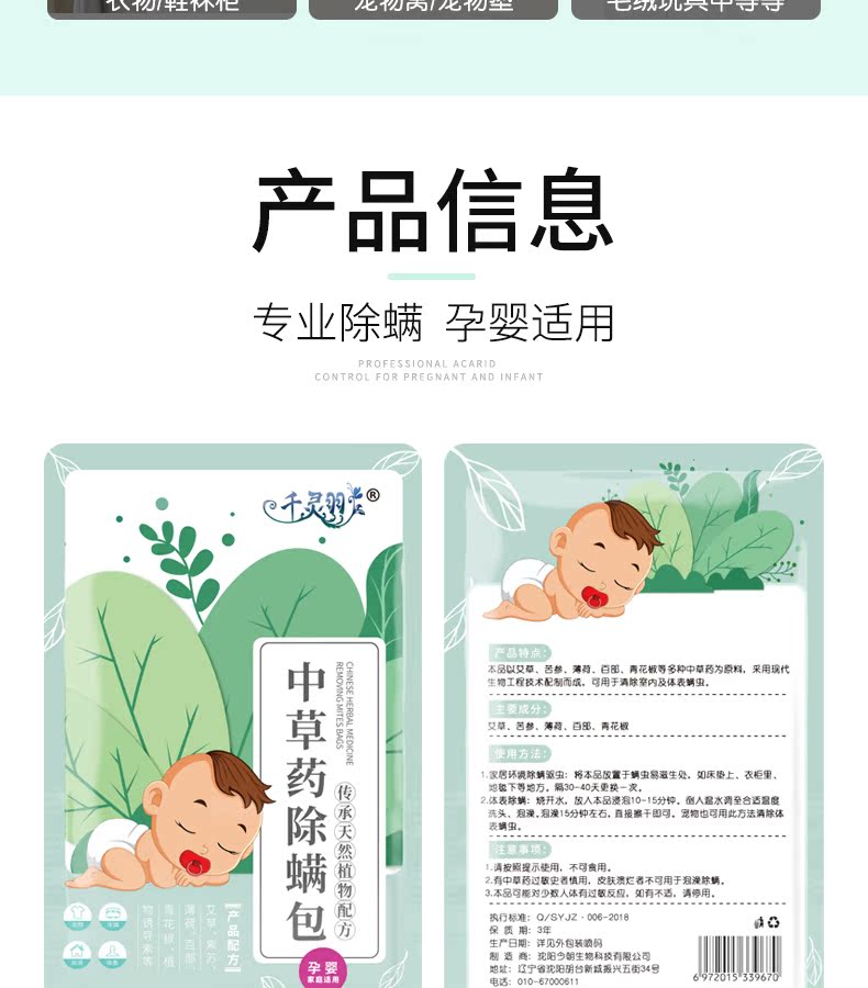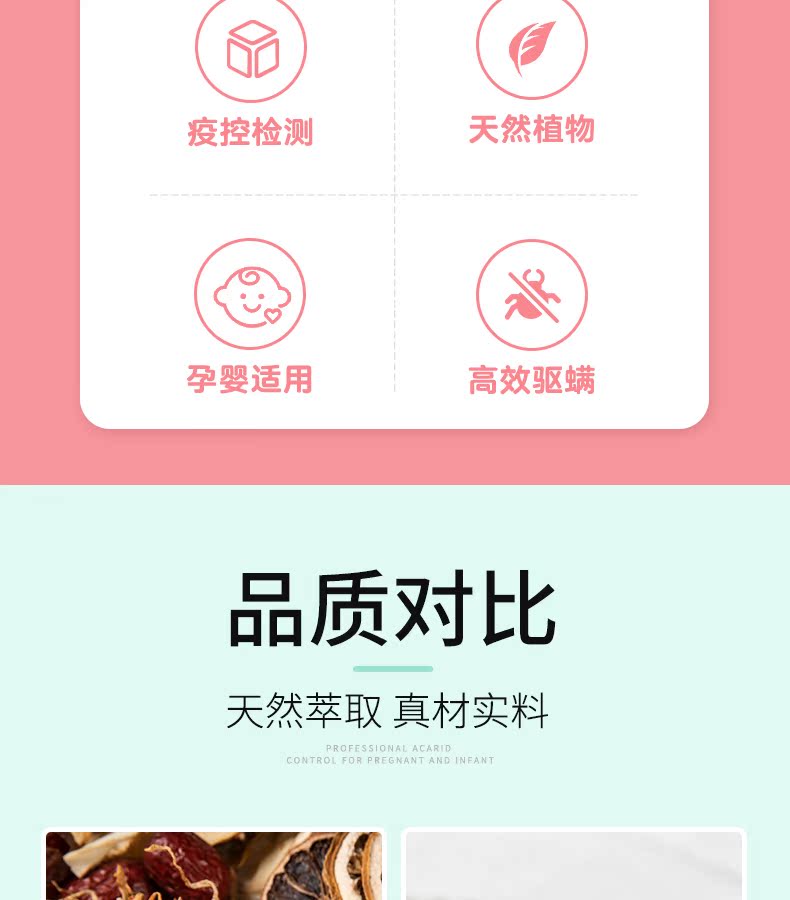 萃取植物精华,中草药配方,中疾控全权威认证,安全温和!婴儿孕妇都能放心用~多场合可用,除螨、抑菌好帮手!