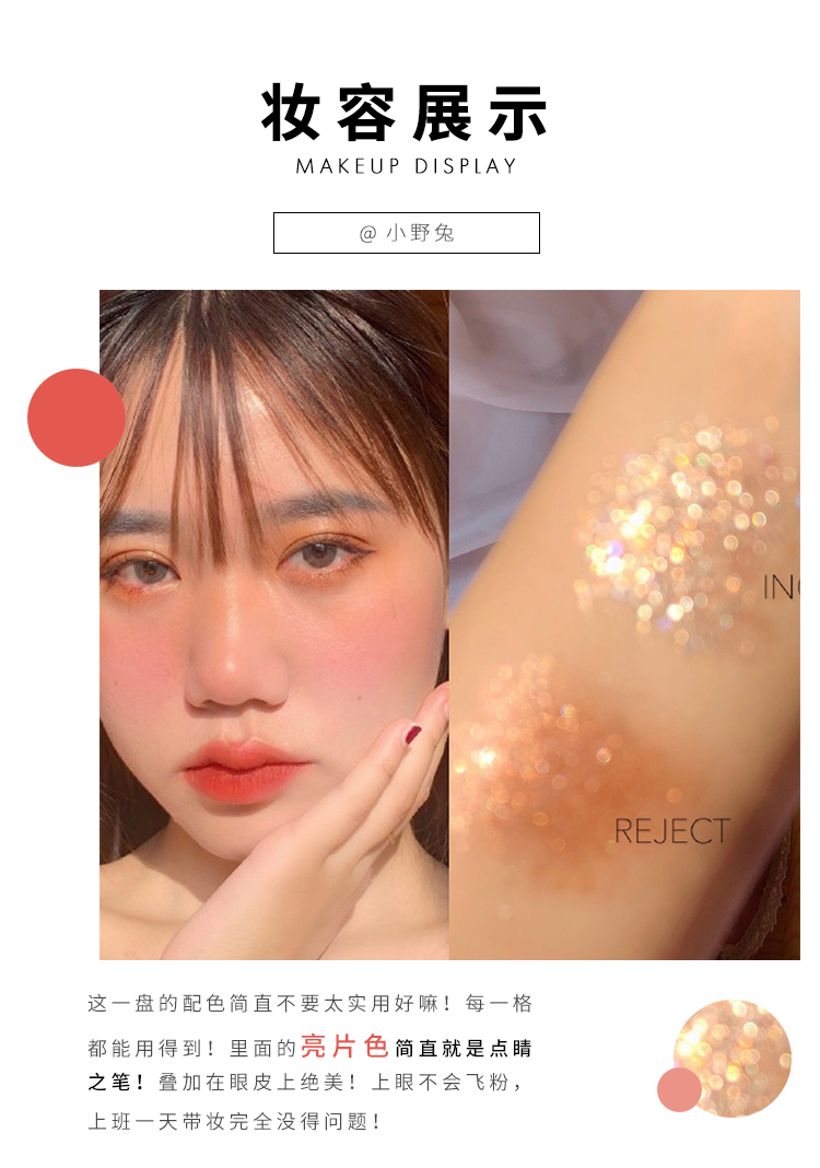 眼影盘女十二色,集合奶茶色,豆沙色,枫叶色等温柔配色,全盘哑光眼肿和单眼皮妹子的清纯少女本色,眼彩十色,丝滑贴肤,柔和丝滑触感,持久着色力