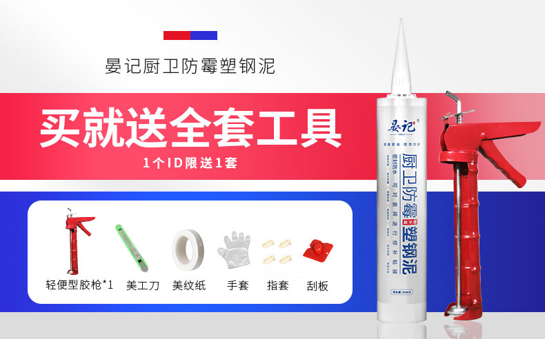 【送全套工具赠品!】创新型塑钢泥防水胶,优质膏体,细腻无杂质,耐高温不易变形,坚硬如钢,告别传统复杂施工,一挤轻松防漏防霉,让您摆脱厨卫烦恼!【赠运费险】