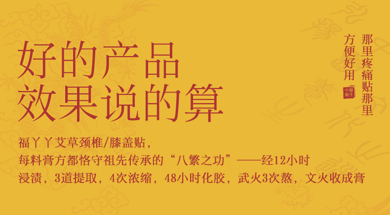 名医传承配方,传承工艺,甄选多种地道药材,经过8道工序,匠心熬膏完美融合熬制成膏,成就自发热好贴,不仅缓解疼痛,更是治本!送家人超赞!【赠运费险】