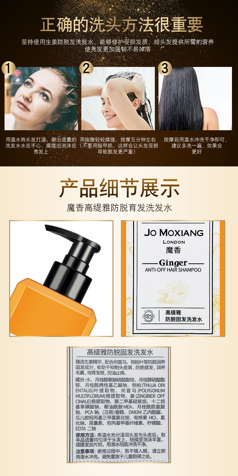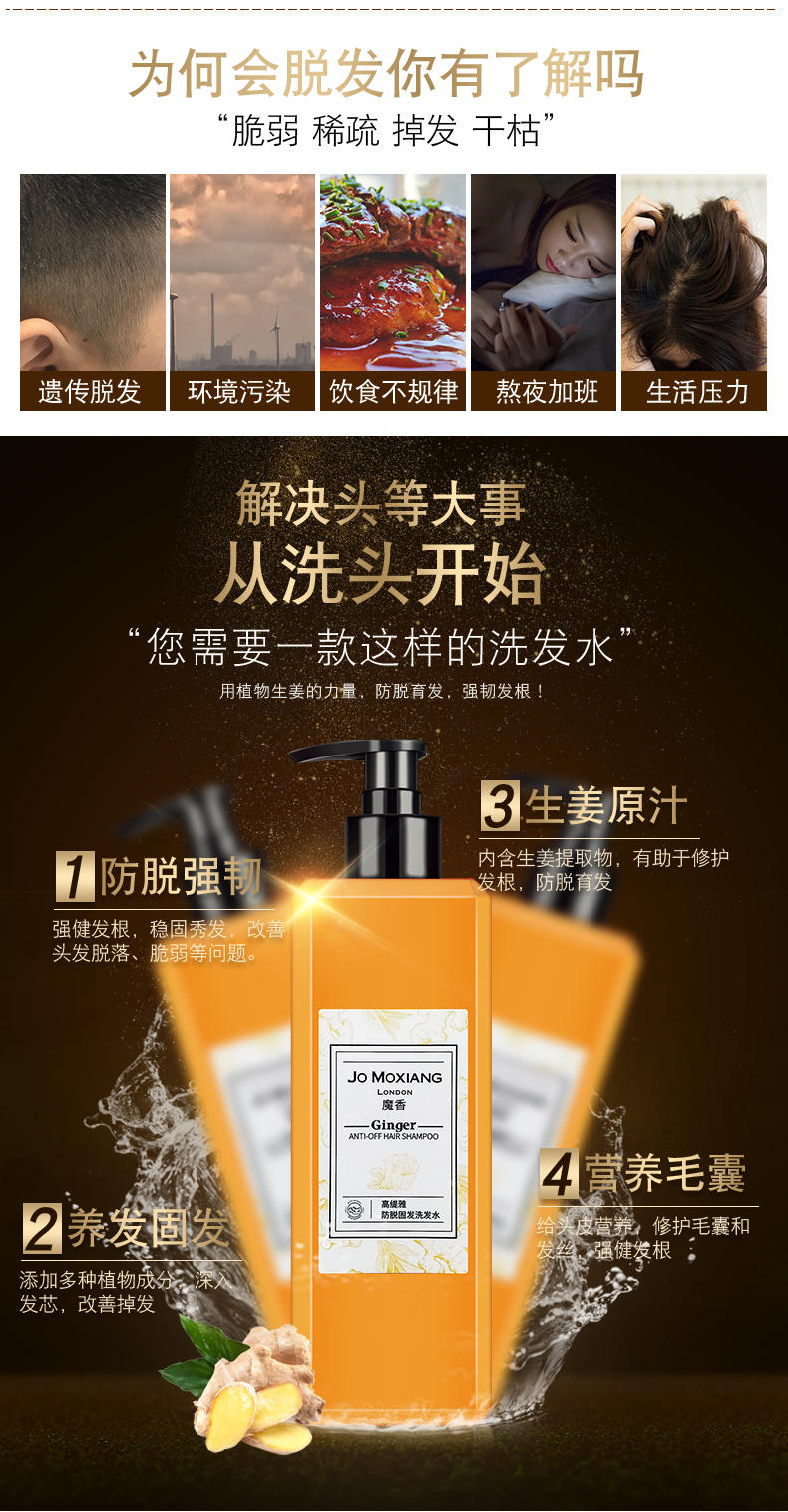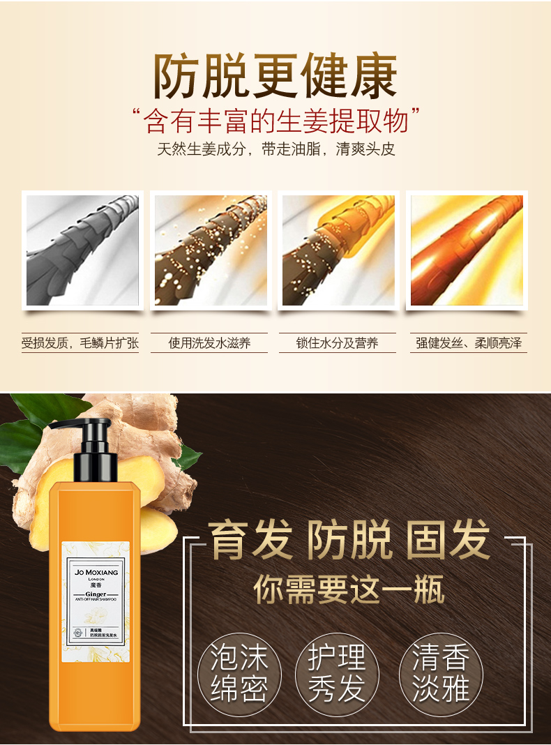 生姜控油洗发水!甄选天然生姜提取物+椰油植萃,无硅油配方,放心用,深入修护强韧发根,清爽控油去头屑,防脱发,洗出一头柔顺亮滑秀发!
