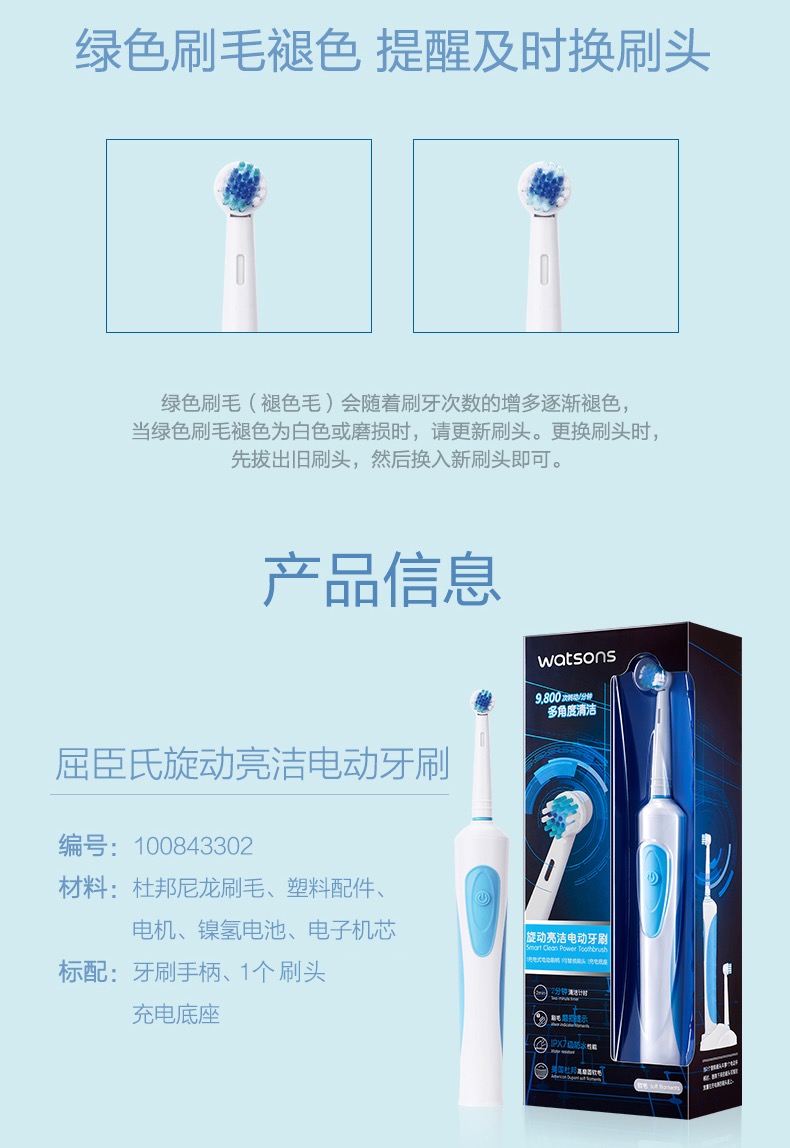 天猫超市正品保障!旋动亮洁电动牙刷,2分钟计时刷牙功能,每分钟高速转动9800次,灵活深入清扫隐匿牙菌斑。您想要一把关爱牙齿的电动牙刷。天猫超市次日到达!