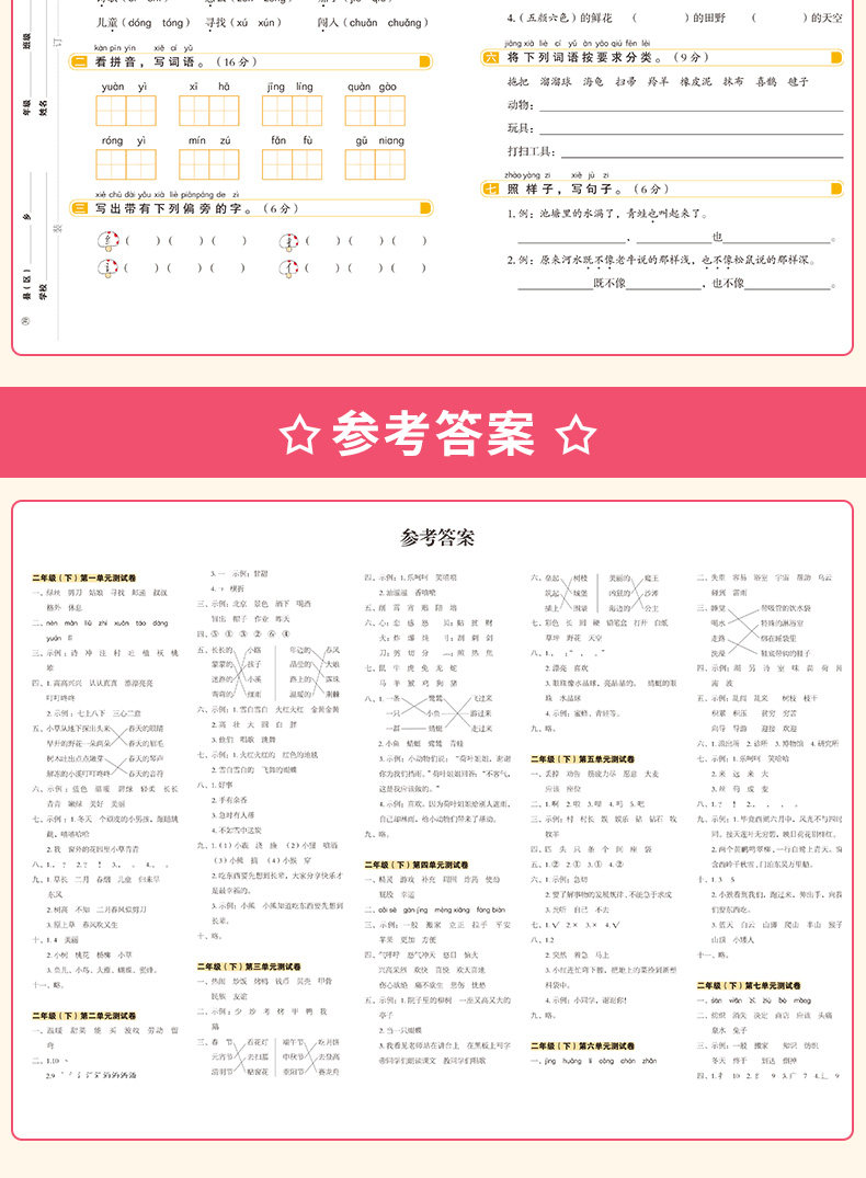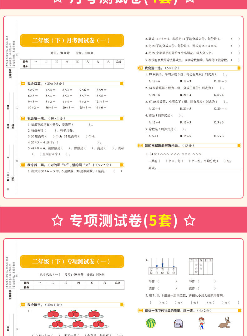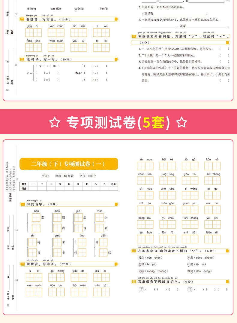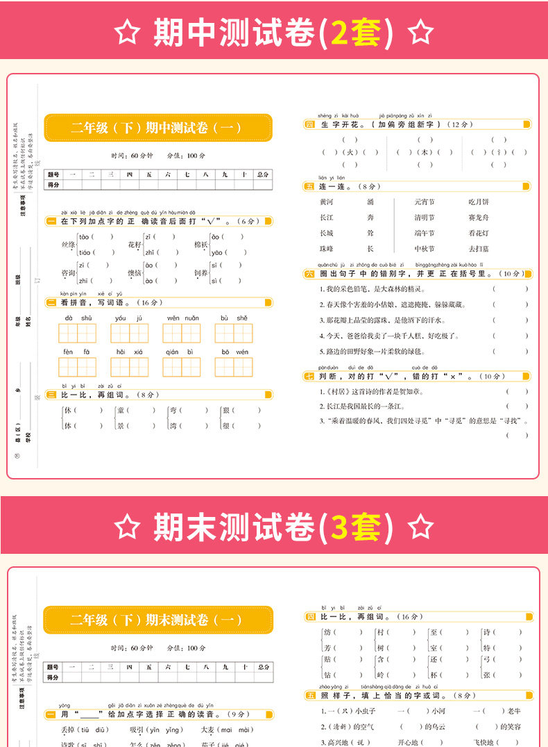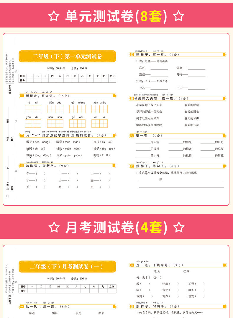 二年级下册同步语文+数学测试卷套装人教版