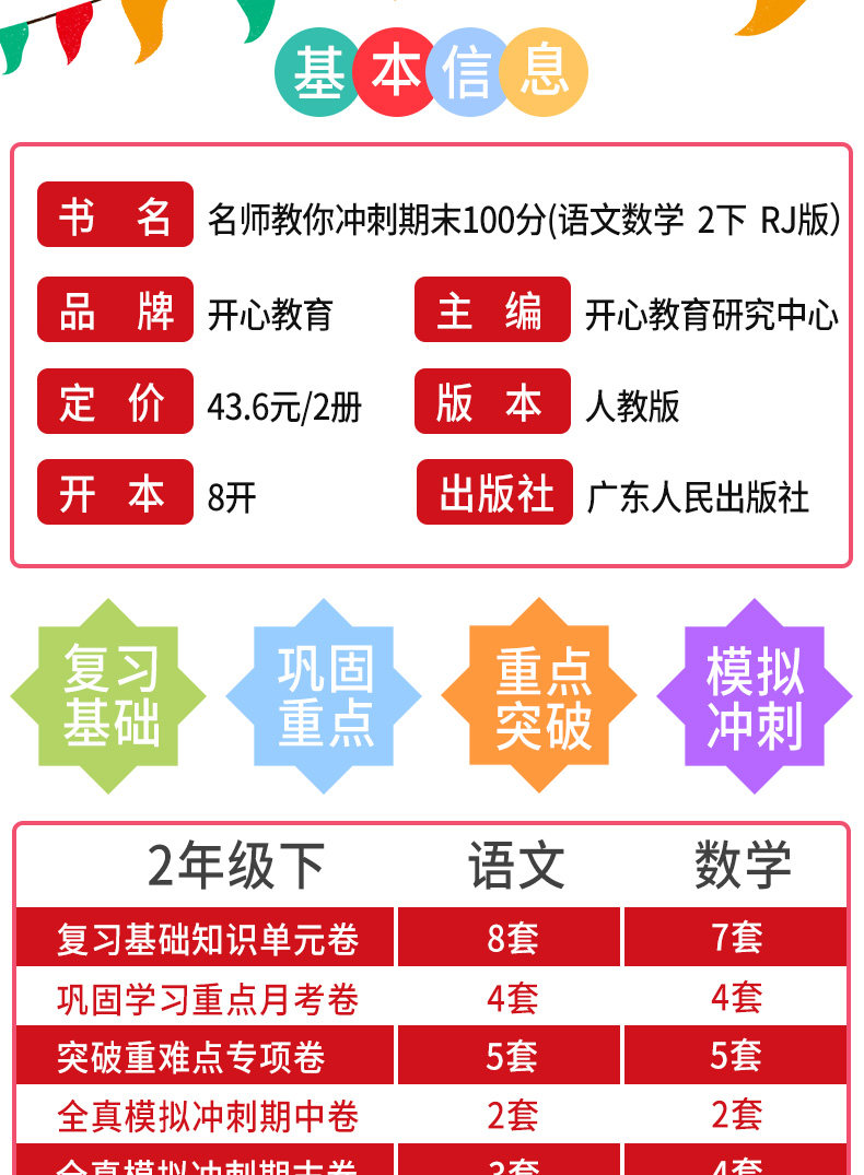 二年级下册语文+数学,2020冲刺期末100分,名校同步训练,印刷清晰不伤眼,衔接教材,预习培优,知识盘点梳理,内含参考答案,【赠运费险】