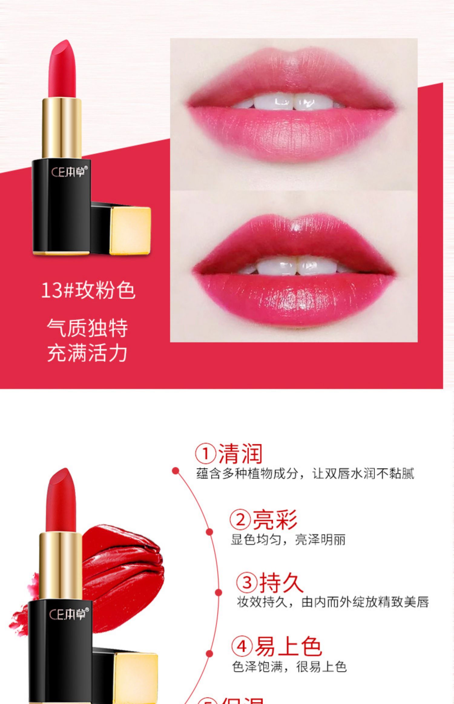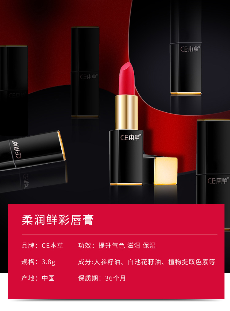 【ce本草口红】四色可选,一抹漂亮时尚唇色。水润保湿,滋养舒适,高显色配方,所见即所得,高颜值金管,小仙女随身潮品!