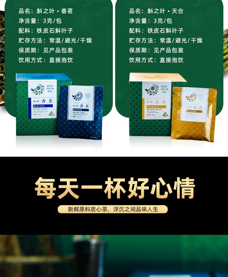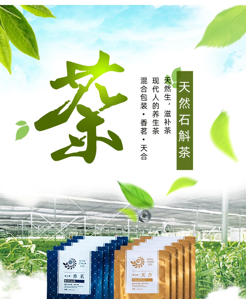 “归还本质、源于至好”香港明之健天然石斛茶、取石斛叶加工而成,茶香怡人,当然不同,斛之叶,定养身,消疲劳,每天一杯好心情!