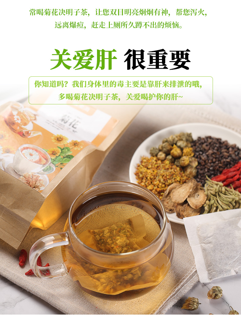 【限时抢购,劵后只需9.8元】菊花决明子,独立茶包,冲泡方便,草本配方,地道选材,便秘,加班熬夜肝上火,每天喝一杯菊花决明子茶,帮您泻火,呵护你的心肝小宝贝。【赠运费险】