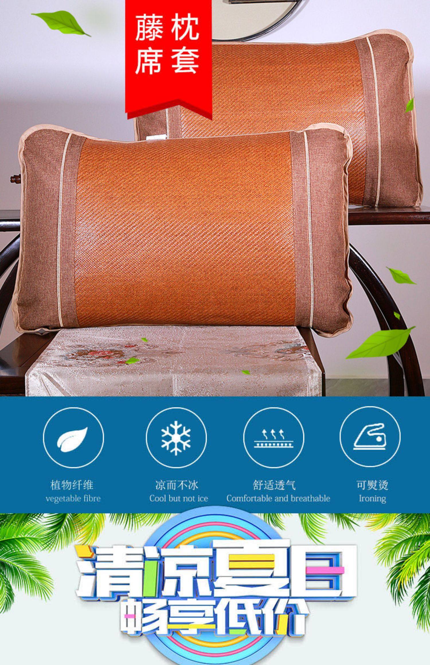【错过不再有】夏季凉席枕头套,精致制作,冰丝、草编任君选择哦!!优选天然材料,凉而不冰,吸湿透气,清新防潮,夏季避暑必备良品!!【赠运费险】【七天无理由退换】