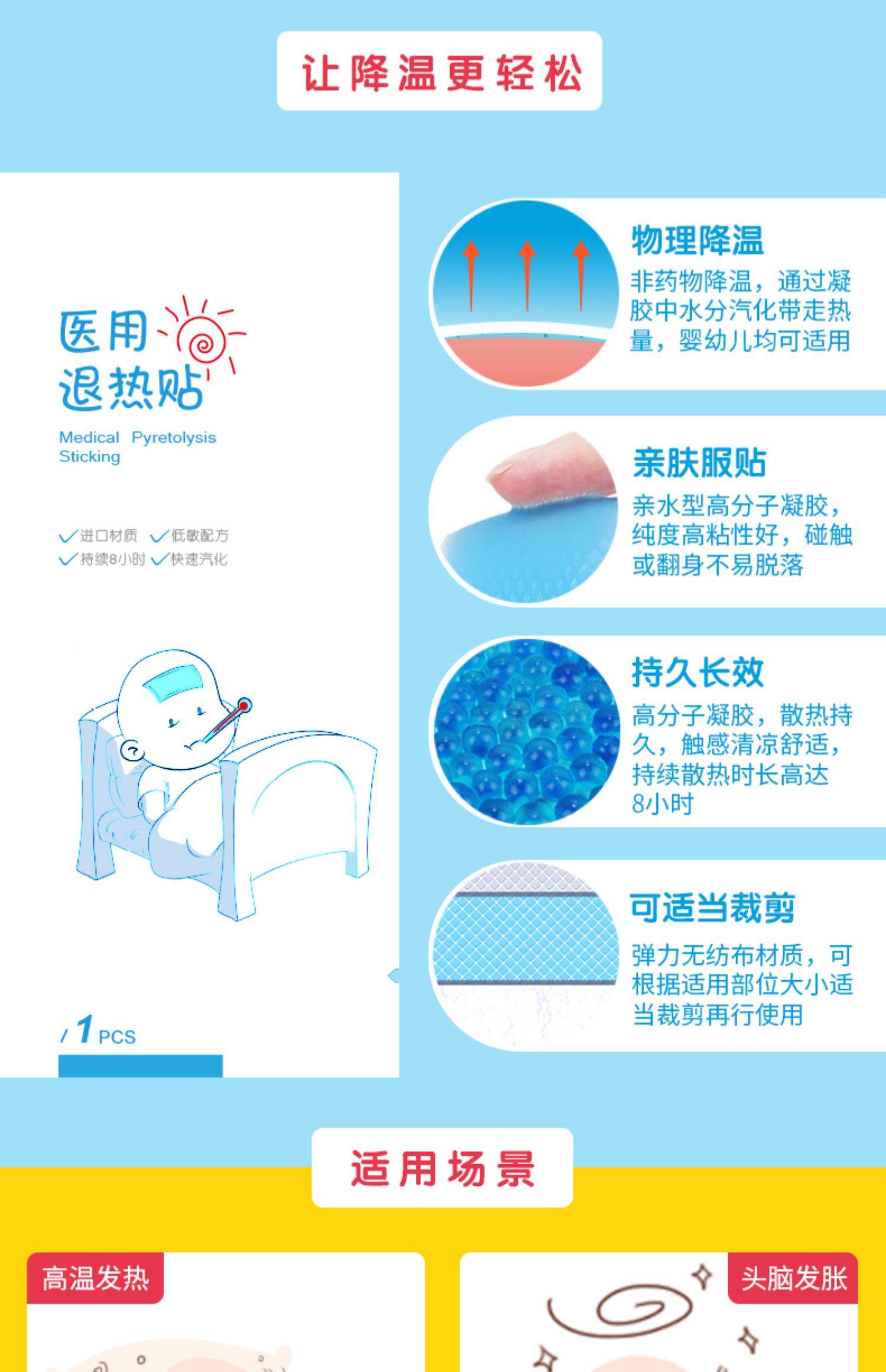 【买1送1到手共8片】诺斯清医用退热贴,物理降温快速退烧退热,进口材质,低敏配方,持续8小时,快速降温。温和不刺激,大人小孩都能用,妈妈们放心购买哦~【赠运费险】
