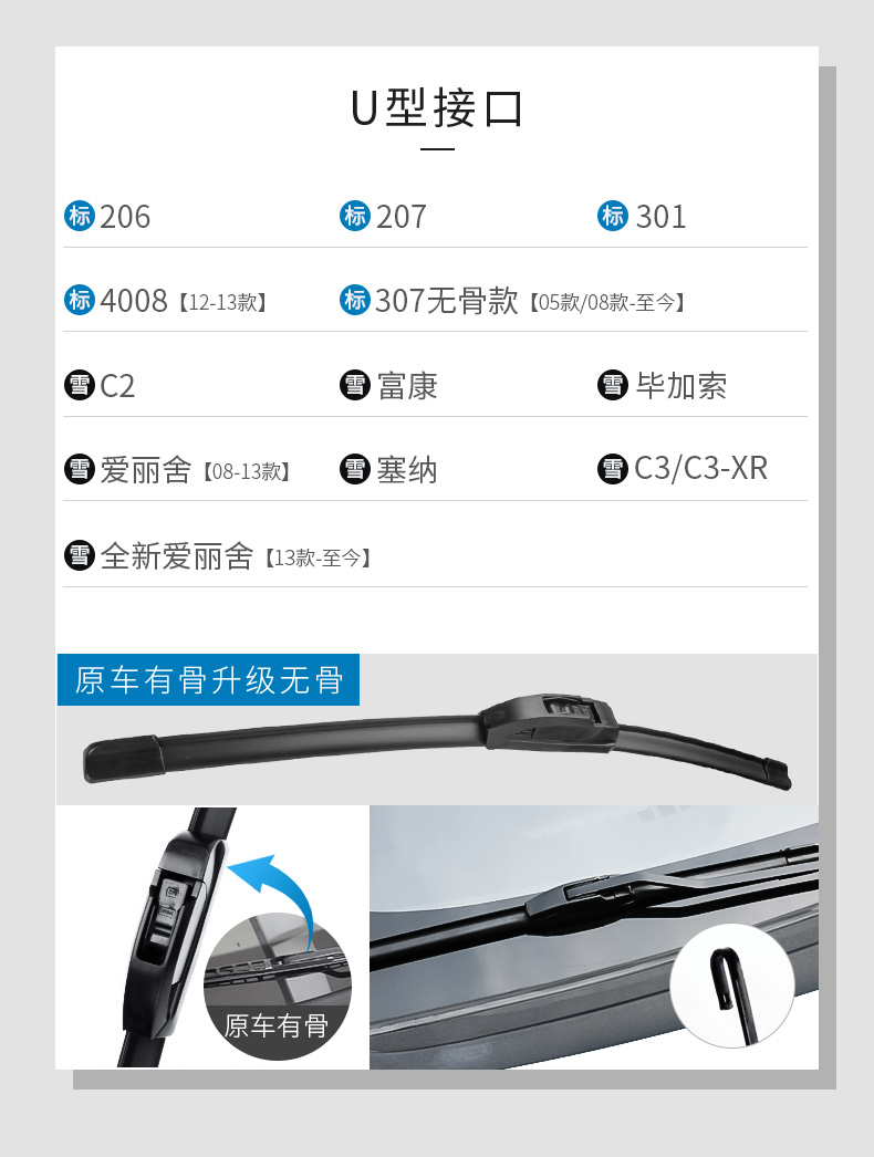 适用于99%的车型,大牌品质,专利设计,几十万次的刮拭测试,确保长久不变形,告别频换更换雨刷的烦恼,高清静音耐用,老司机推荐