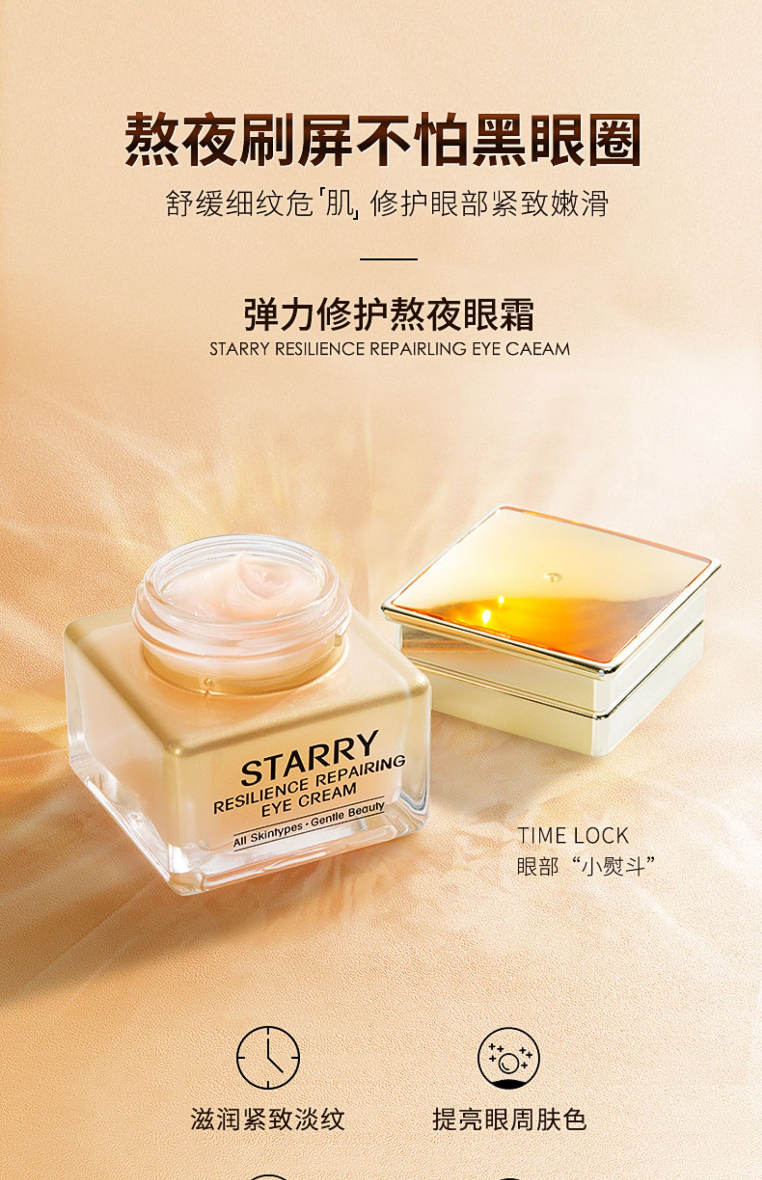 告别黑眼圈,紧实眼周,淡化细纹,富含多种滋养成分,质地丝滑滋润,舒缓滋润、细致修护,还你水灵明亮大眼!【正品保证】