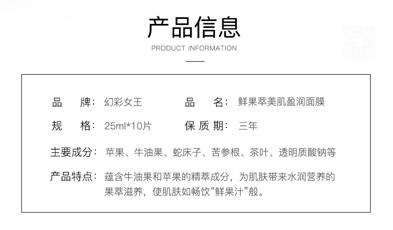 幻彩女王鲜果萃美肌盈润面膜10片