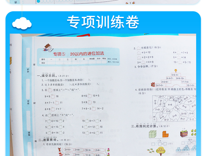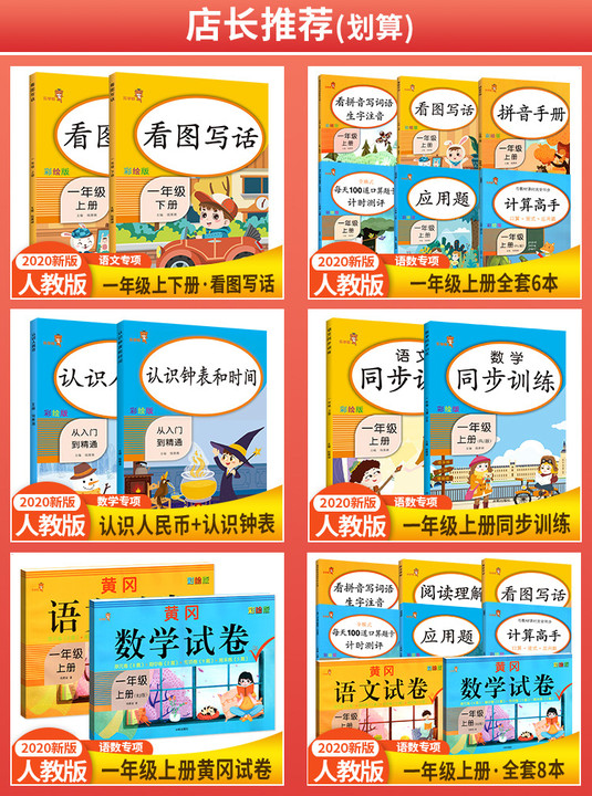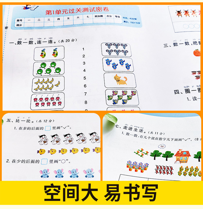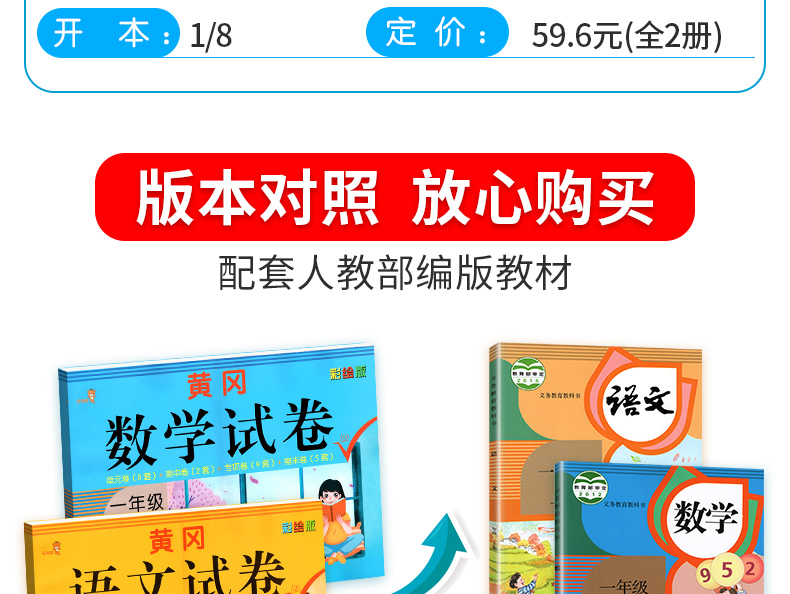 【2本】【全套彩色试卷】2019新版人教版,小学一年级上册单元测试卷,黄冈数学思维训练,名师编写,一本搞定,巩固知识点,正版认证。【赠运费险】