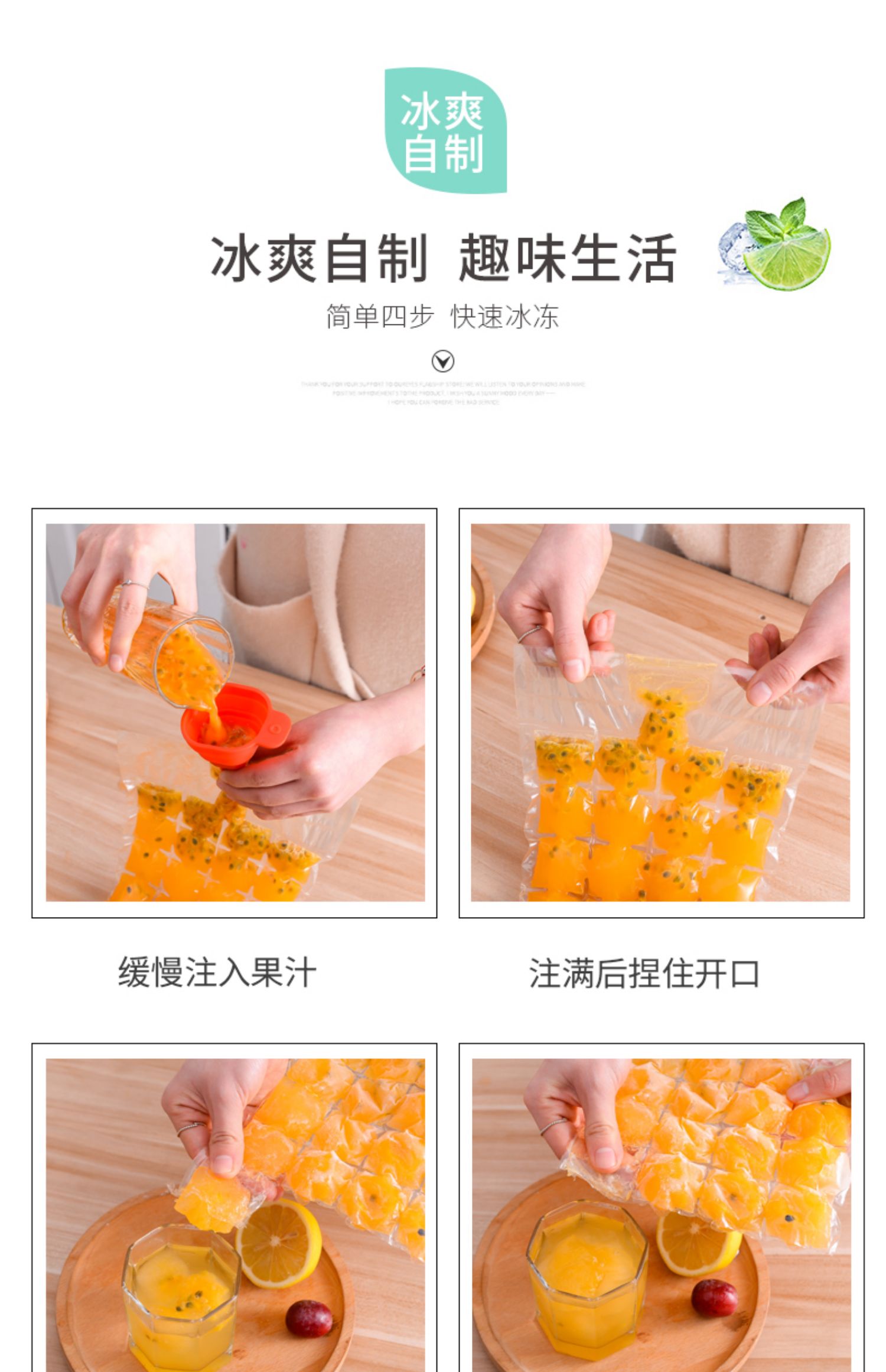 【送漏斗】夏天来啦,少不了吃冰~一次性冰袋,自动封口,安全不漏汁,方便卫生,可DIY冻橙汁、冻酸奶、冻百香果等等,轻松享受清凉一夏!!