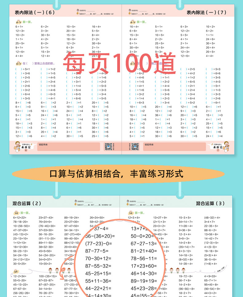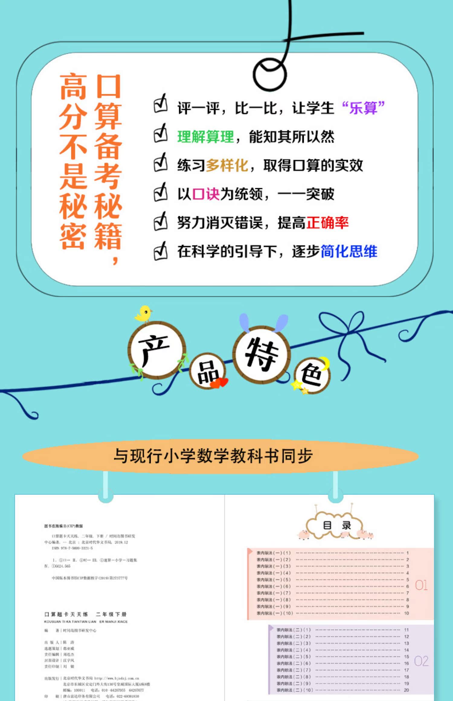 【二年级下册口算题卡】二年级下册人教版,课程同步,题型丰富,100以内的加减乘除法运算练习,让您的宝贝爱上学习,精于口算!