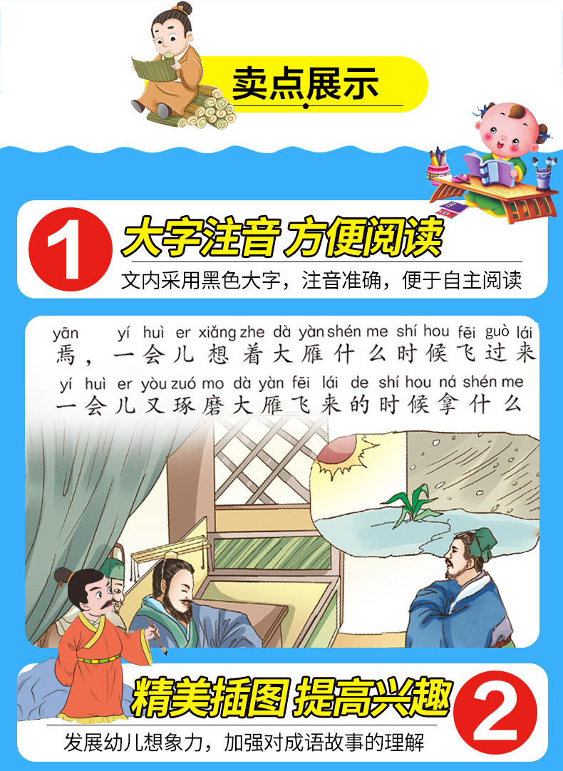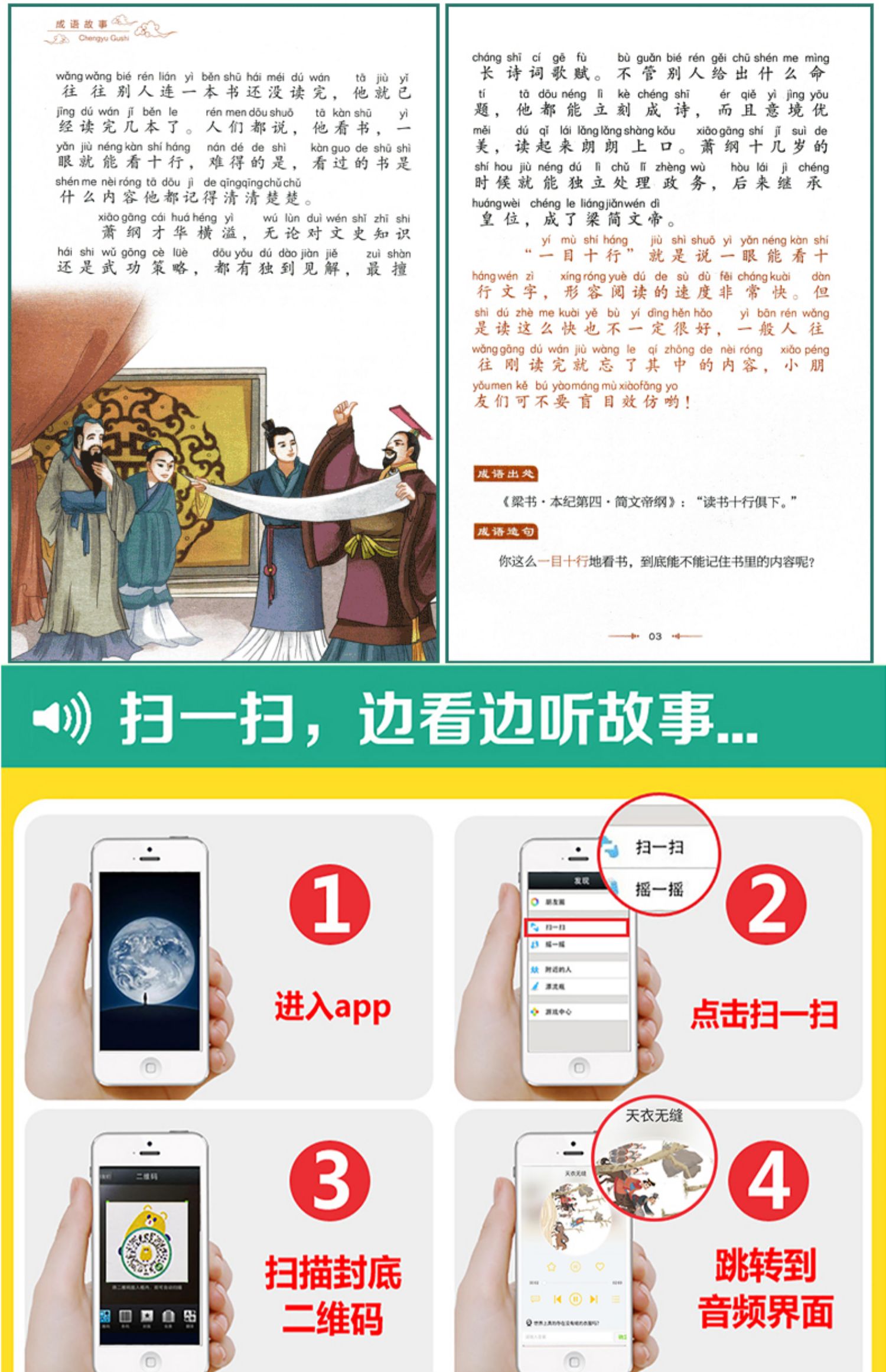 扫码有声绘读【一本是75页,都是注音版的】大字注音,方便阅读,环保纸张,印刷清晰,精美插图,6-12岁的小朋友都适合,呵护儿童健康,让家长放心!成语启蒙现在开始【赠运费险】
