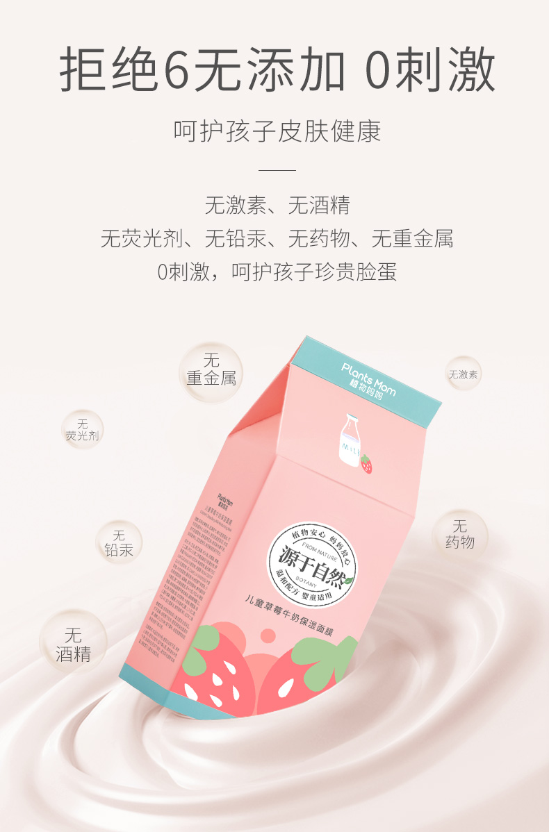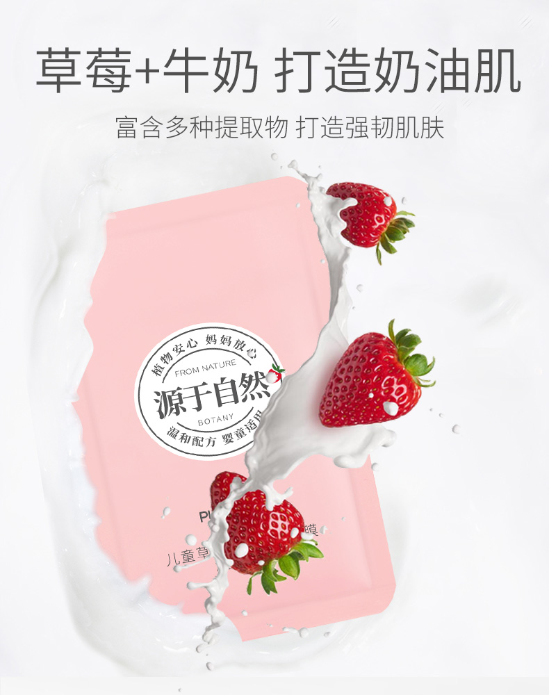 儿童专用面膜,滋润补水!牛奶精华+草莓精华,蕴含丰富维生素,天然温和,加倍亲肤,滋润保湿,呵护宝贝娇嫩肌肤,专为儿童研制,宝妈快抢!【赠运费险】