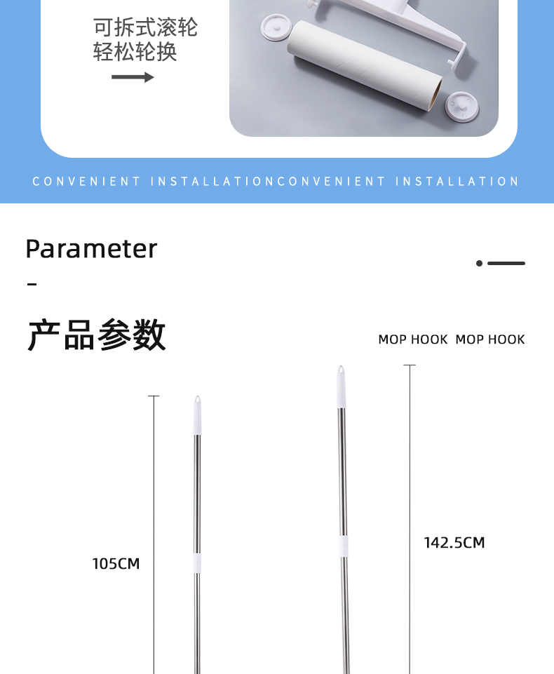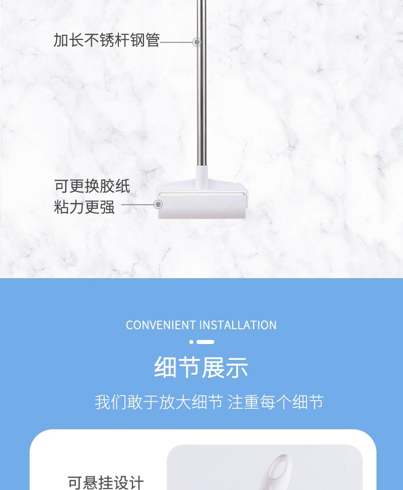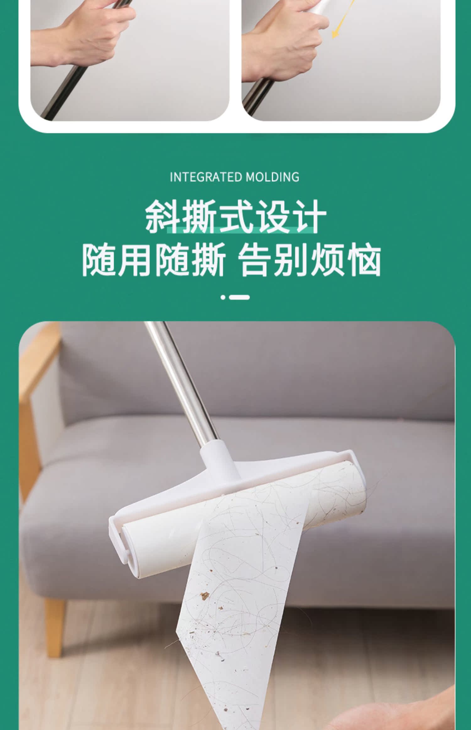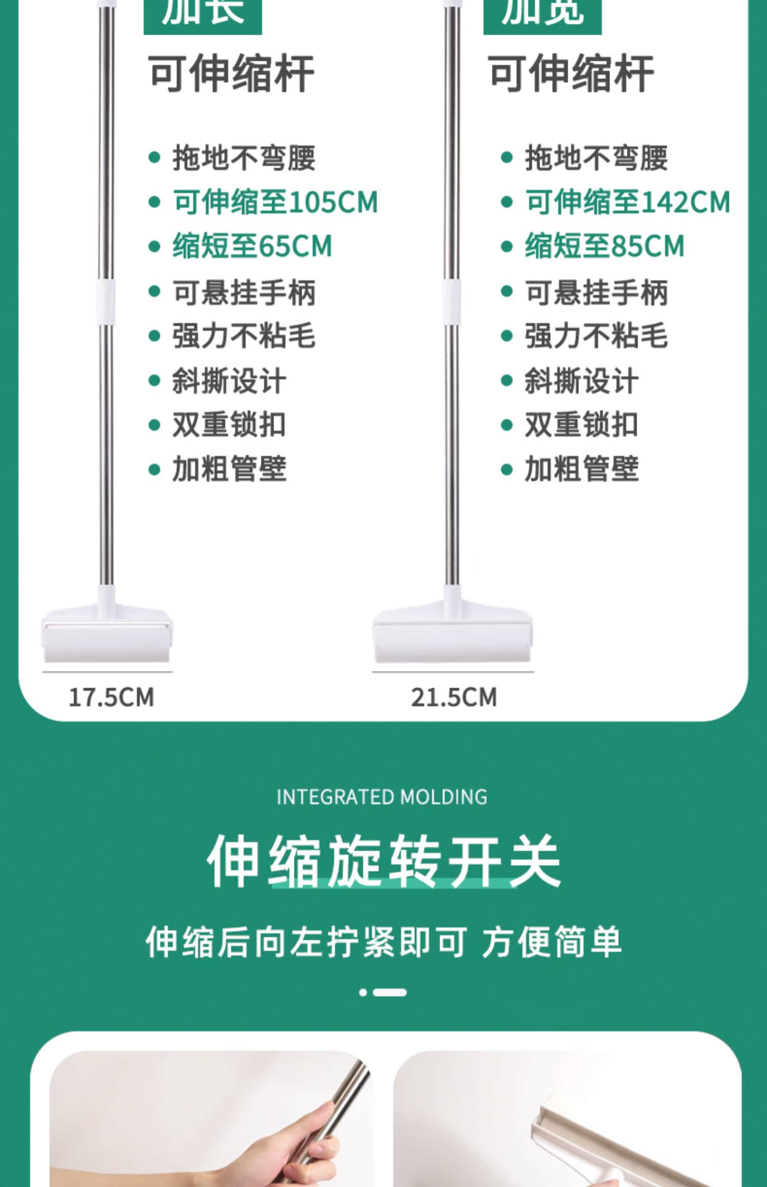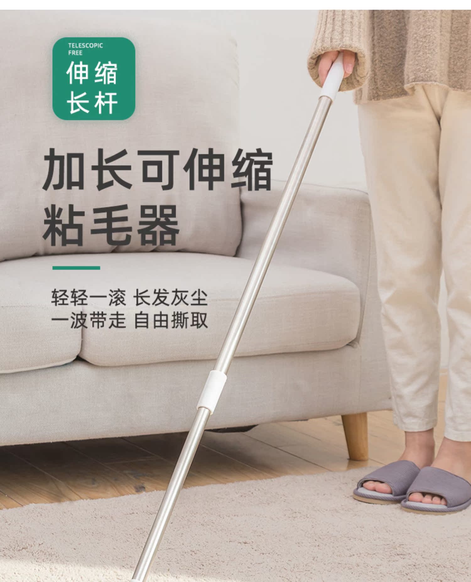 【斜撕设计超方便!】长柄可伸缩毛器,一物多用,可自由伸缩,地板粘毛不弯腰,不费力,可粘纸屑、毛发、食物残渣等,一滚一撕烦恼尘屑去无踪!居家必备!