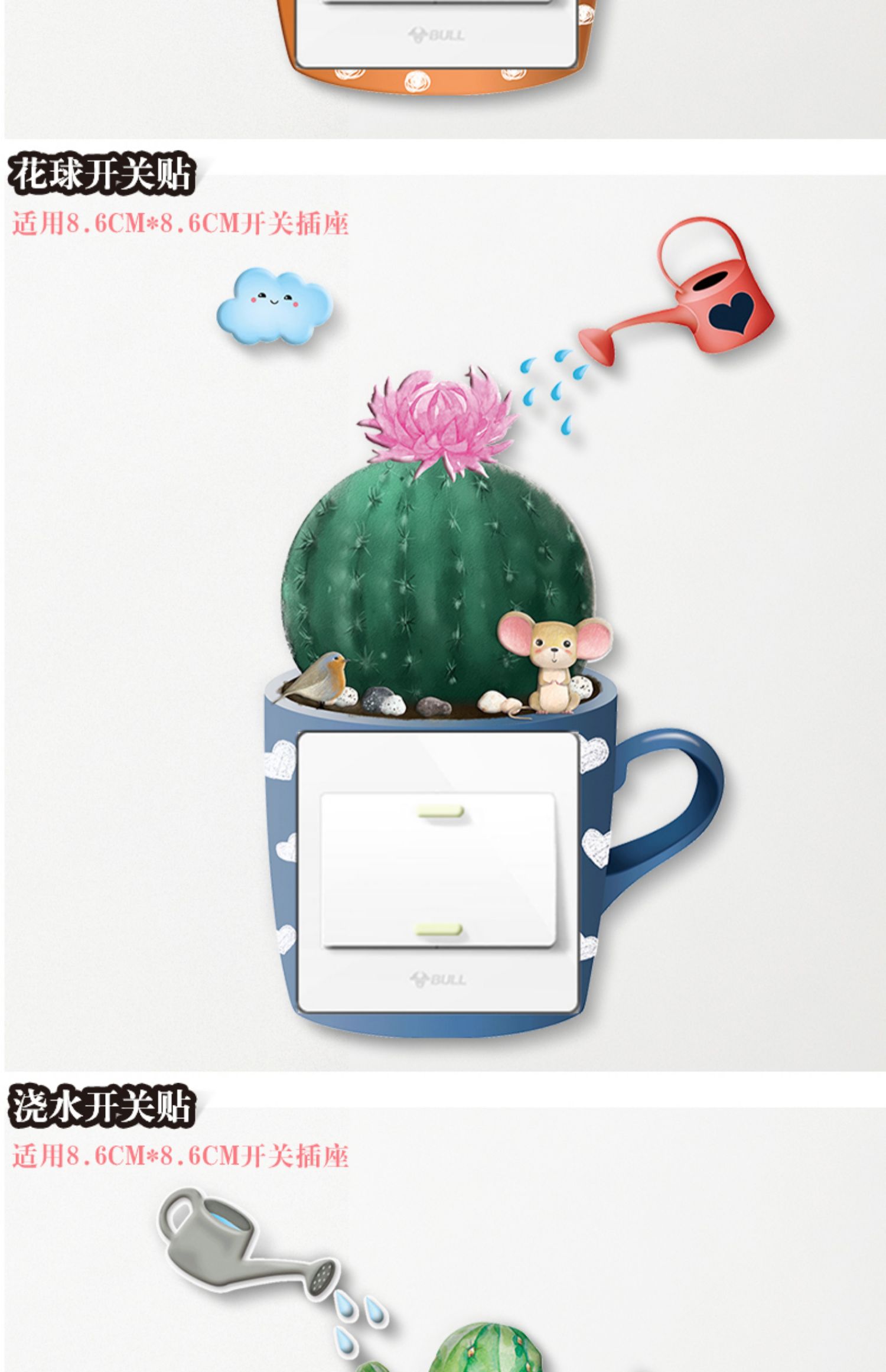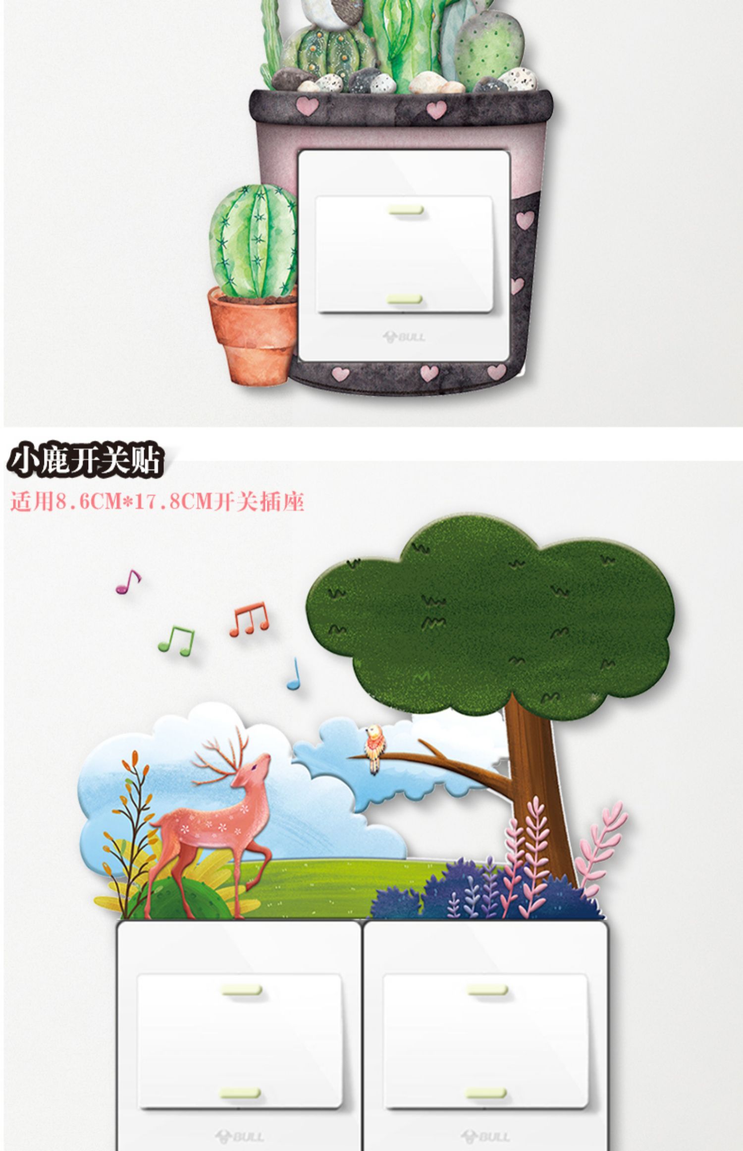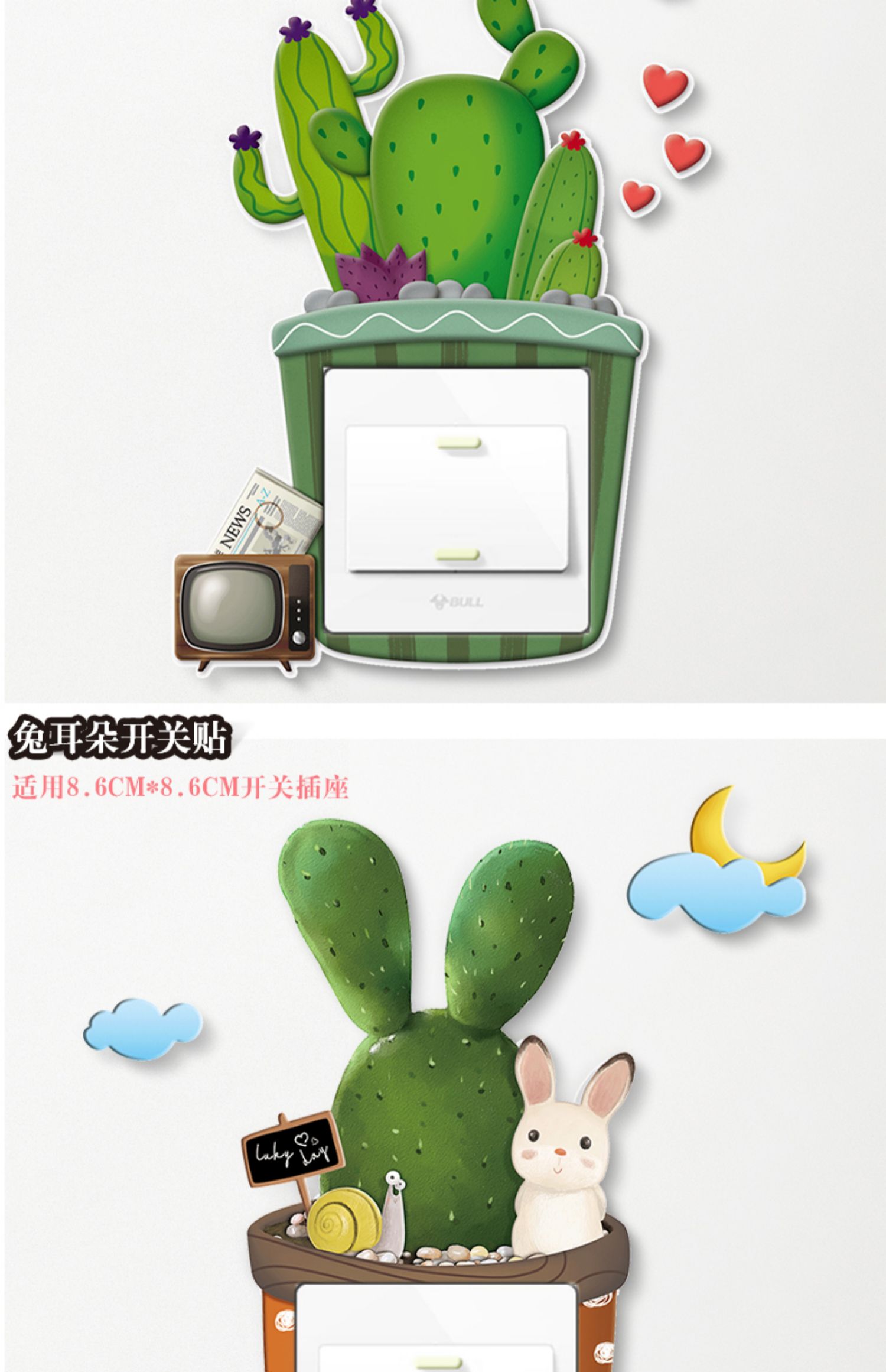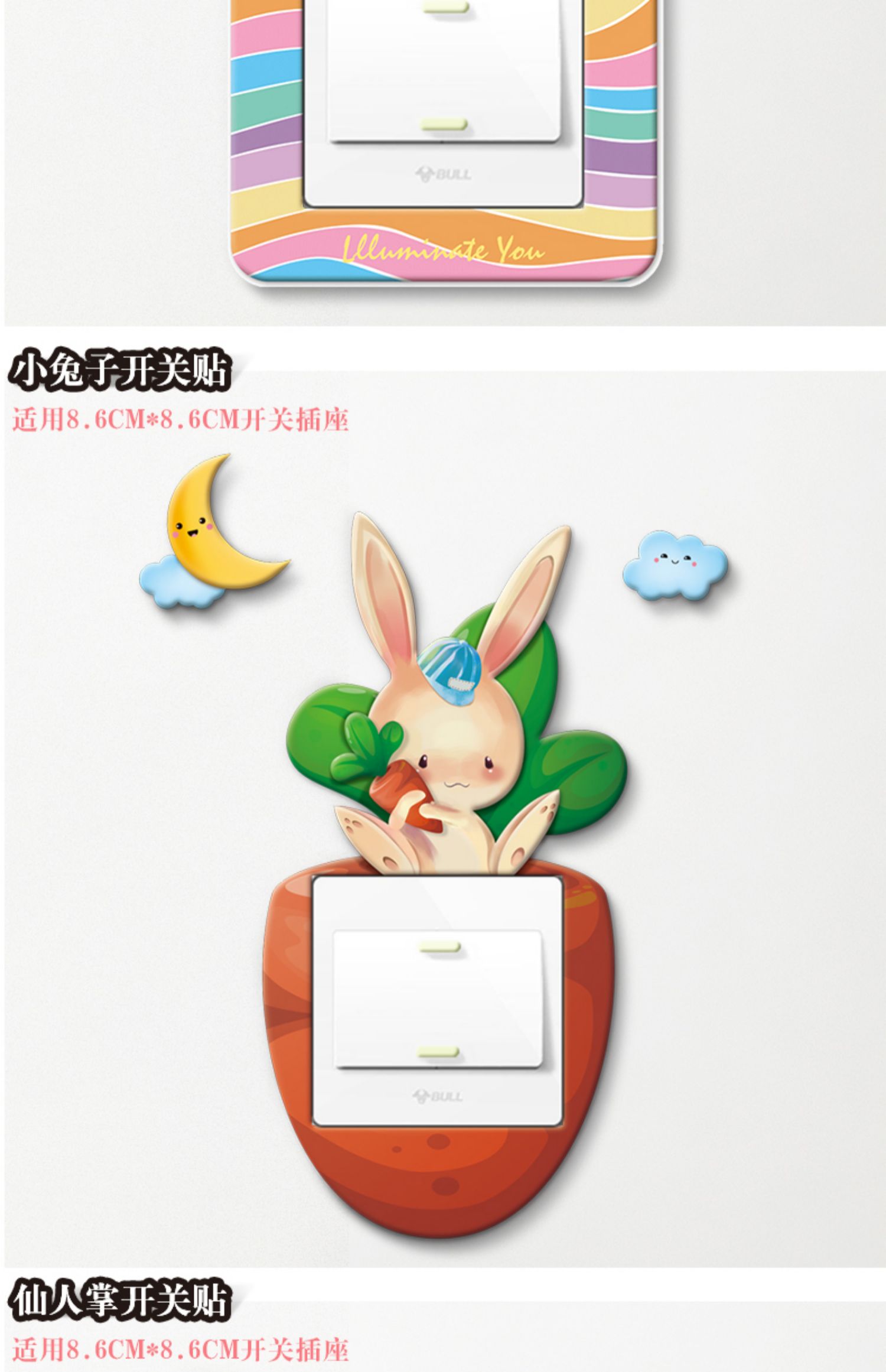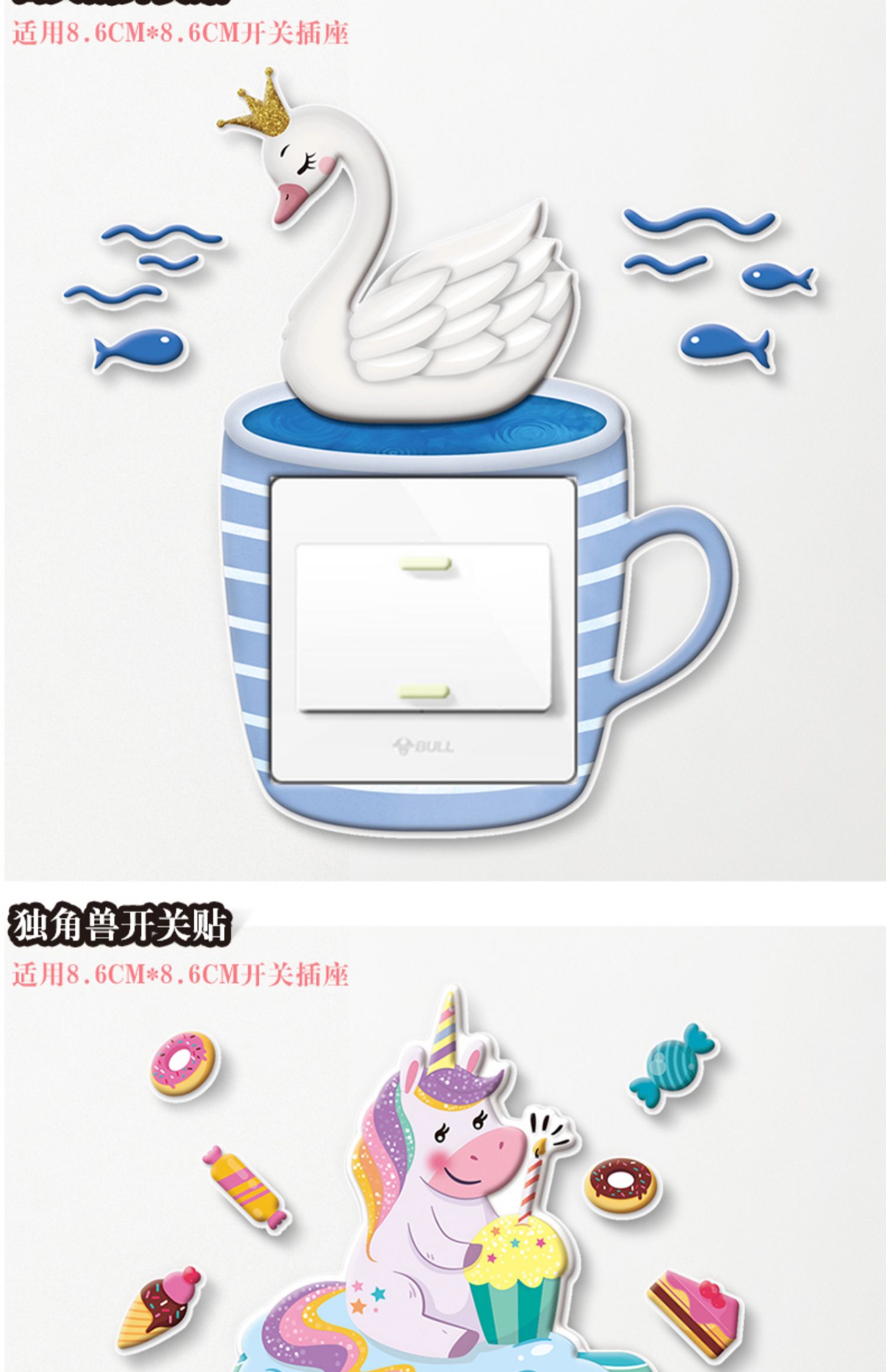3D立体卡通开关贴,充电插座面板创意保护装饰,客厅卧室到处都可用,经久耐用,美丽大方,多款任选。