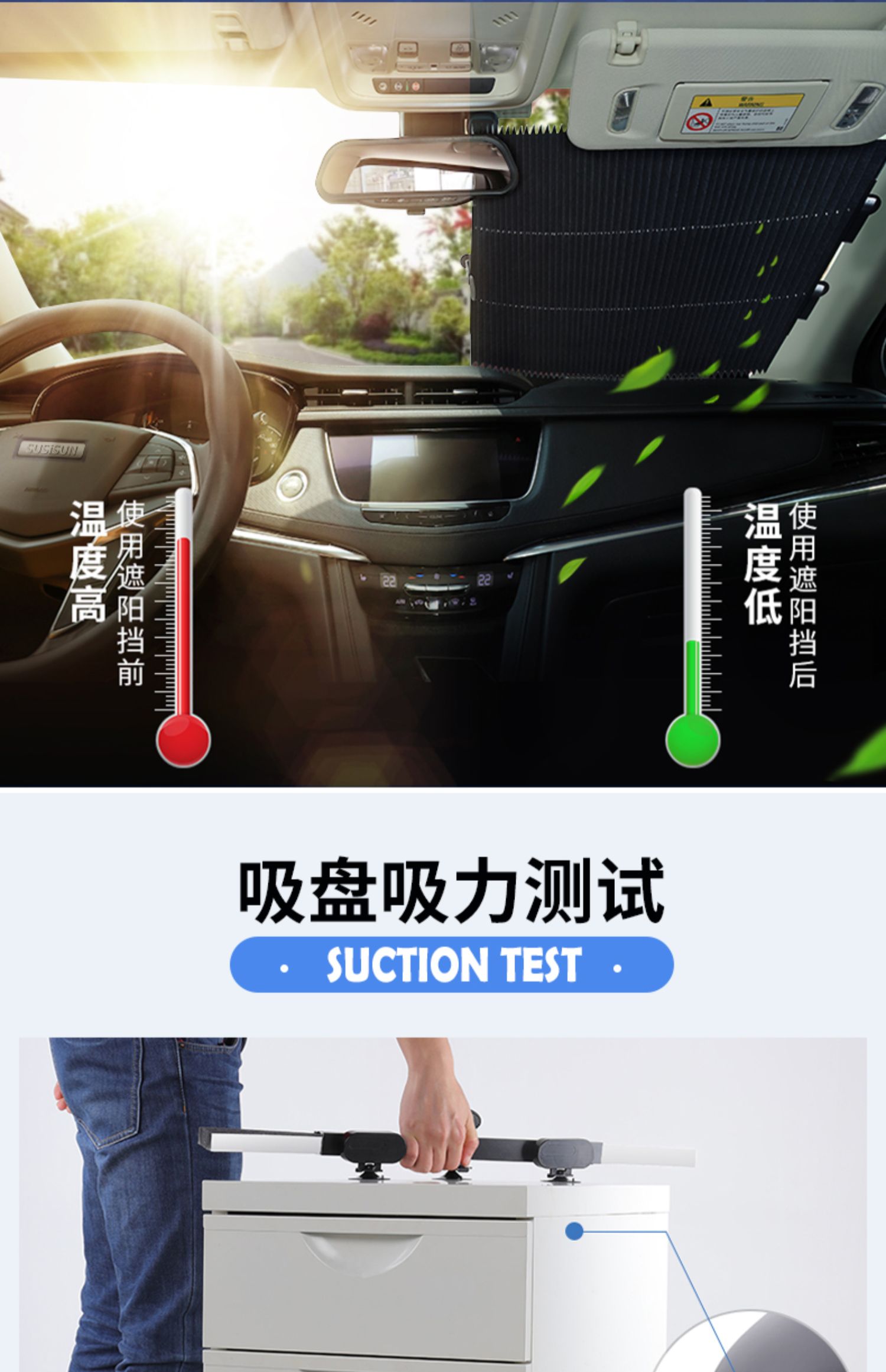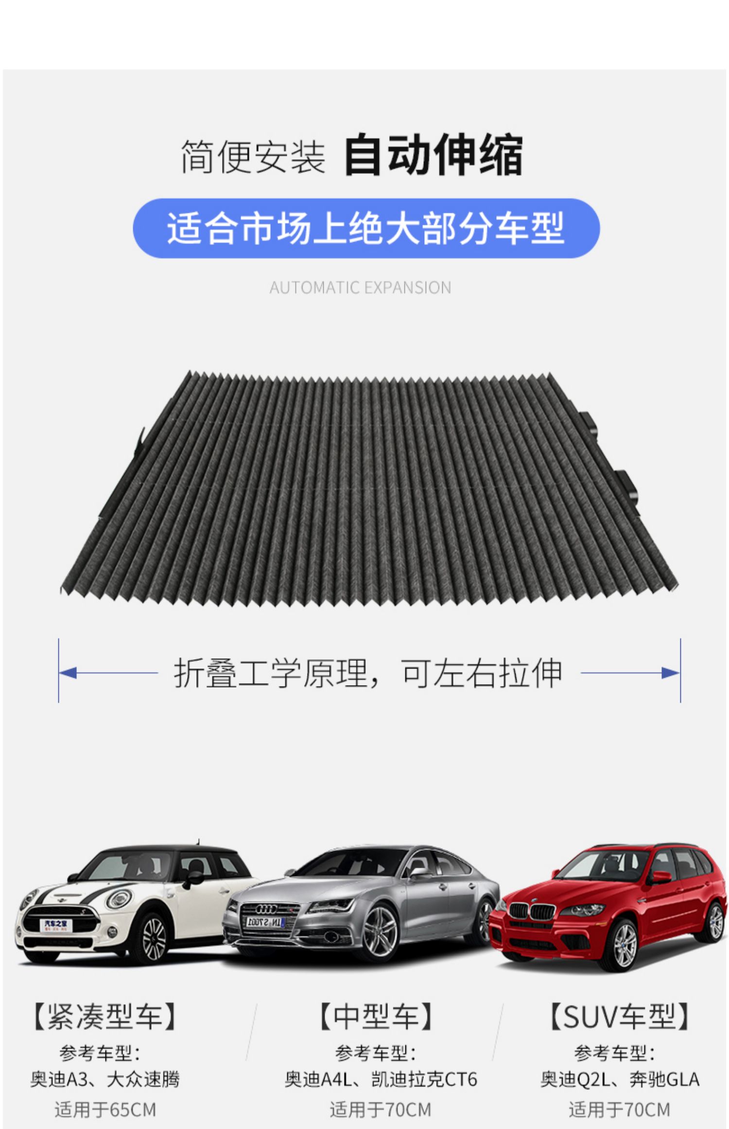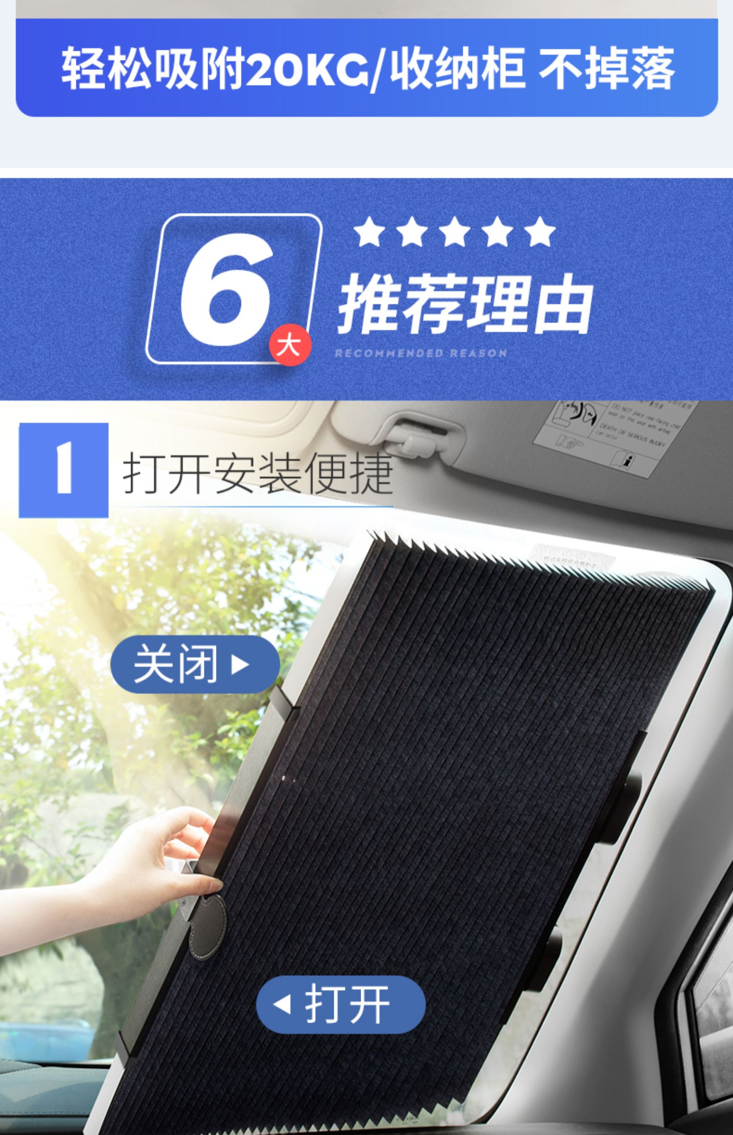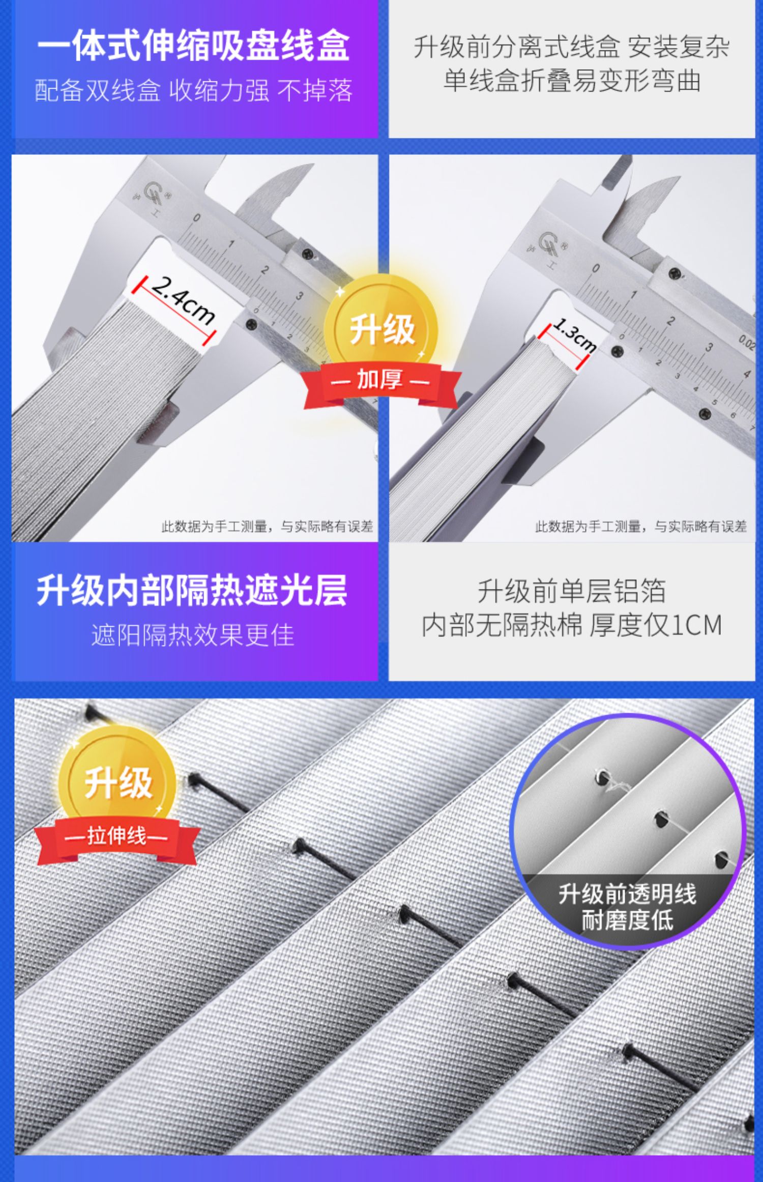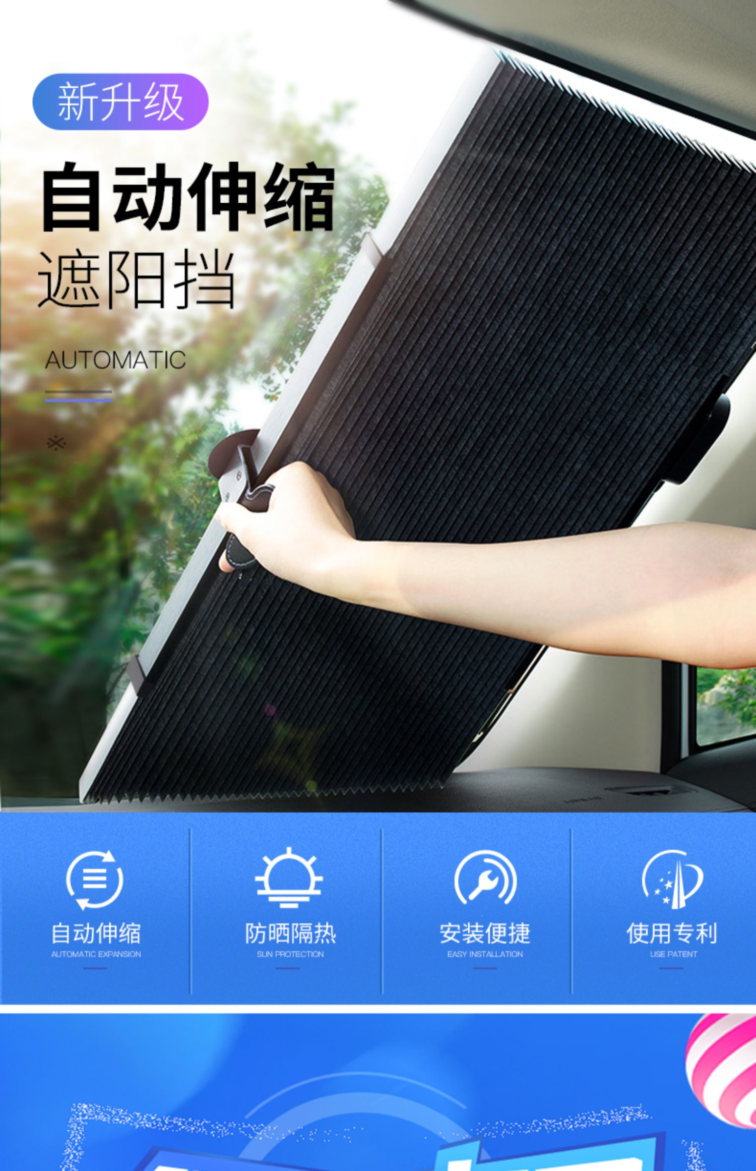 自动伸缩遮阳挡,升级加大吸盘精密挂钩,超强吸力,螺丝加固,不易脱落,升级卡扣保护帽,一体式伸缩吸盘线盒,升级内部隔热遮光层,升级尼龙编织线,精致小巧,收纳方便【赠运费险】~