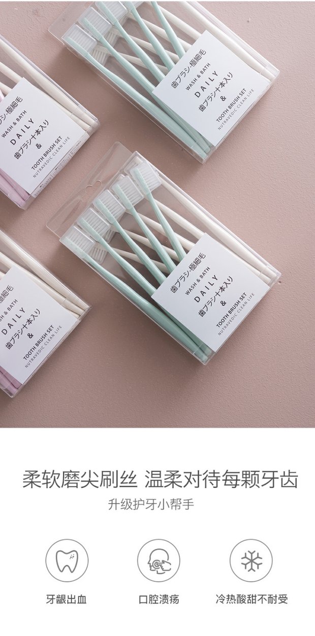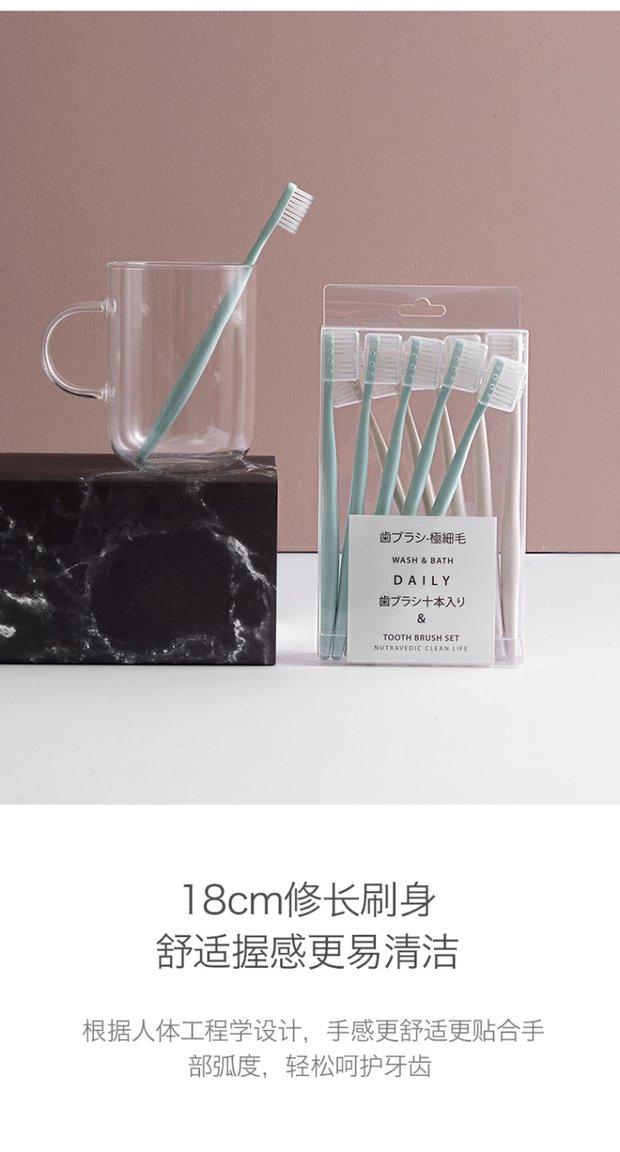 每支牙刷都带独立的保护套!!干净卫生出去旅游直接带上就行。SPA级牙齿护理,吸附力强,能够深层清洁口腔死角,减少细菌滋生。居家必备!整整10支,超划算!家庭套装版!【赠运费险