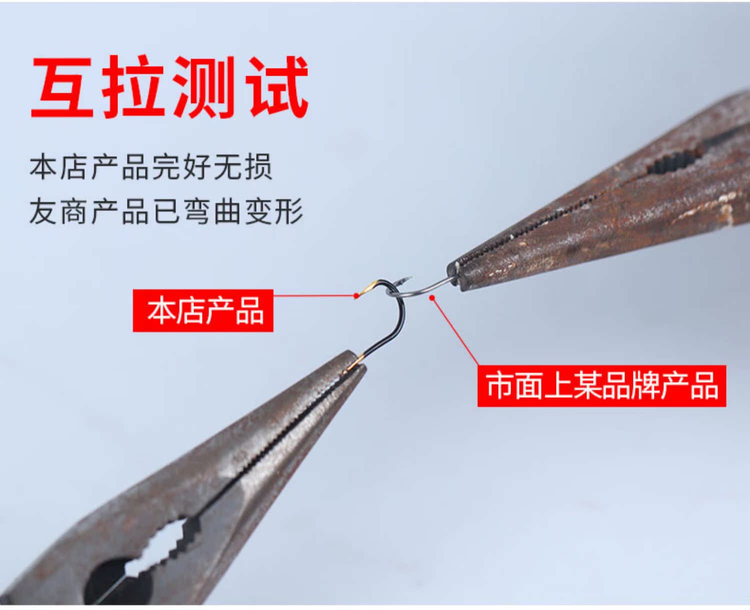 进口钛合金鱼钩20枚,锋利钩尖贯穿力强,无阻倒刺,中鱼厚不易脱钩,线柄凹槽设计,不伤线,绑线牢固力好倒刺设置,防腐蚀图层,鱼钩硬度好!买到就是赚到!