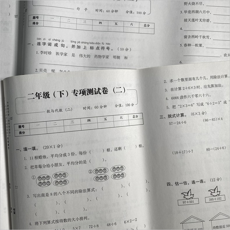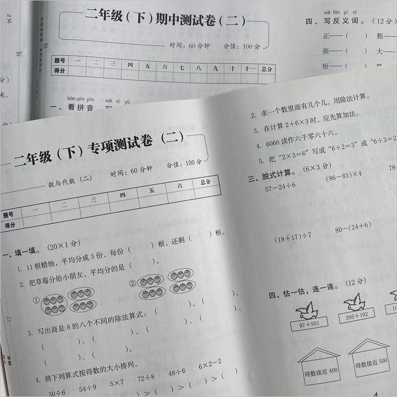 【新华书店旗舰店】【买就送四本练习本】二年级下册同步人教版试卷,语文+数学全套含【单元考+月考+期中考+期末考+名校模拟】共44套试卷,让孩子提前检测,查缺补漏,掌握好学习新方法,专项突破提高。
