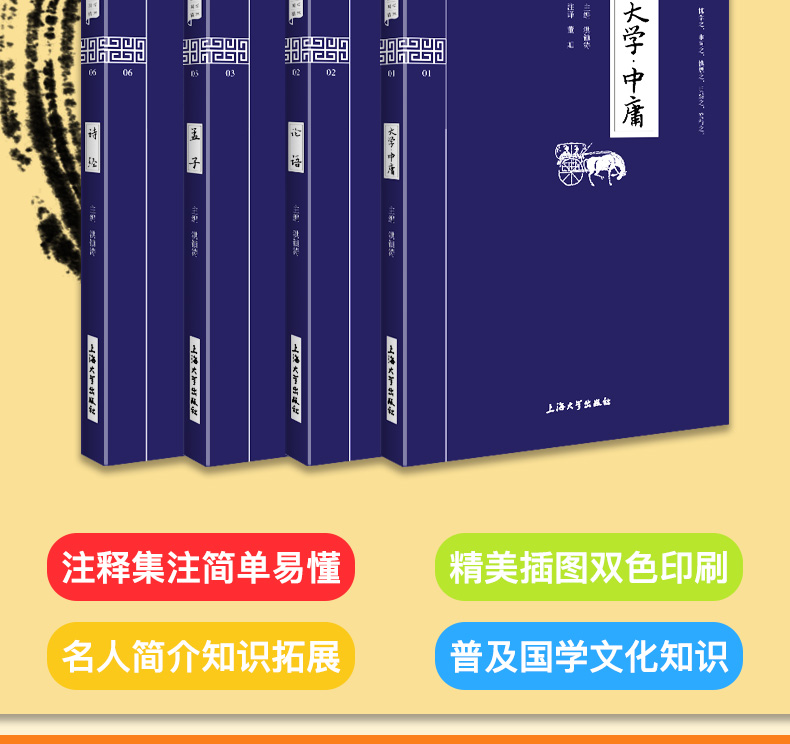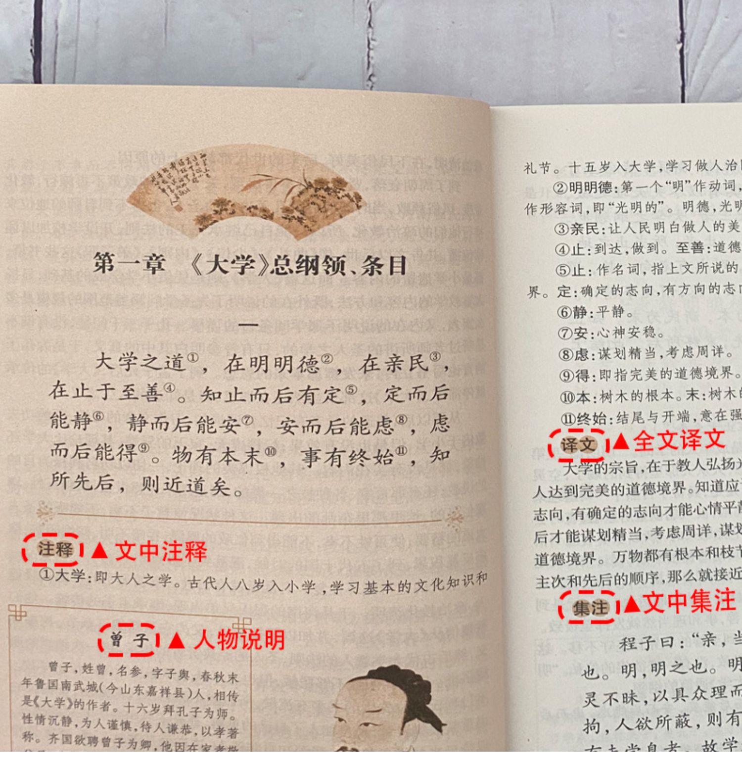 【加厚全本无删减~老师推荐!大学、论语、孟子、诗经!小学初中高中大学读物】中国传统文化,国学精粹,人人都能读懂的国学经典~包含注释轻松学古文,精美插图双色印刷!【赠运费险】