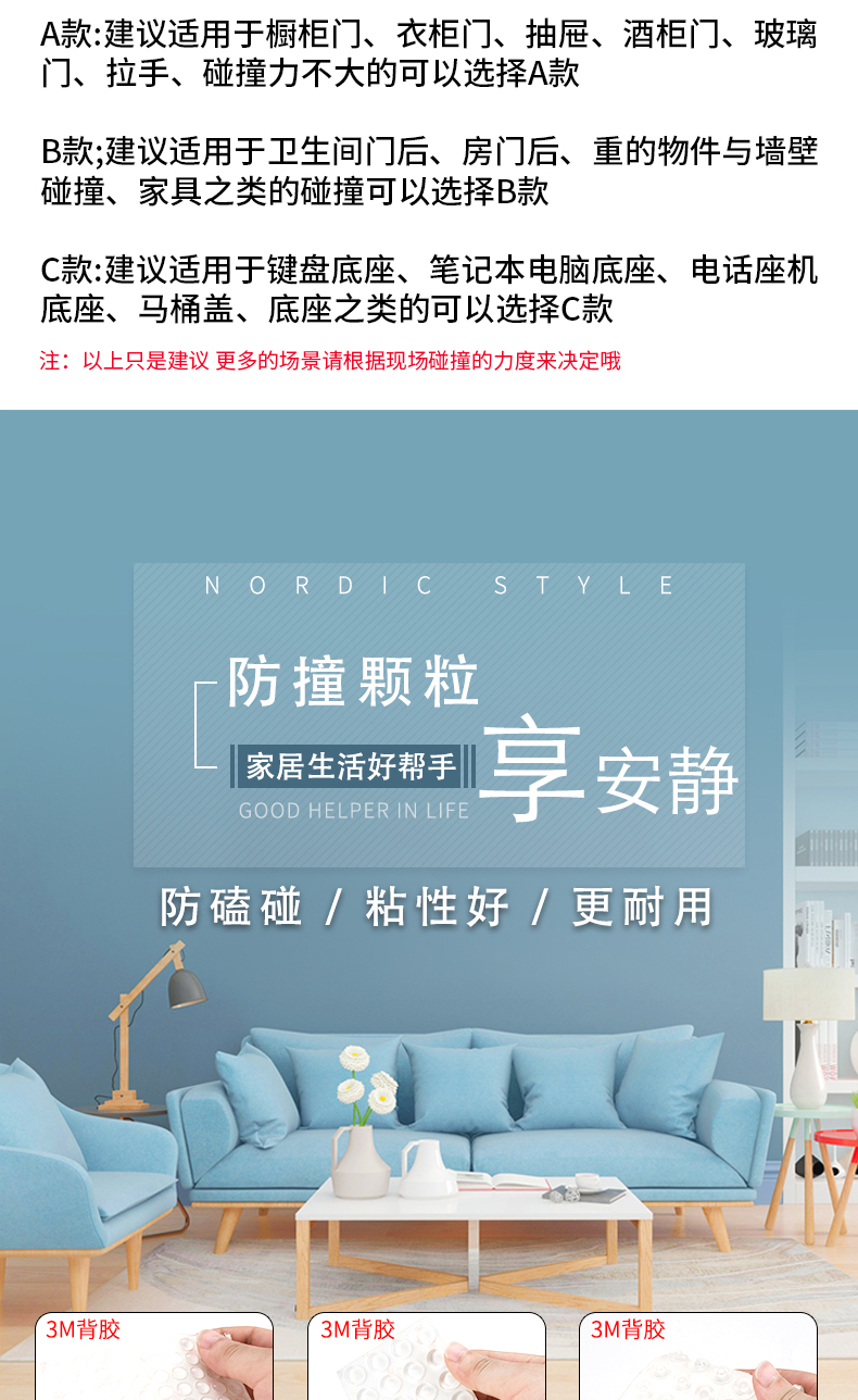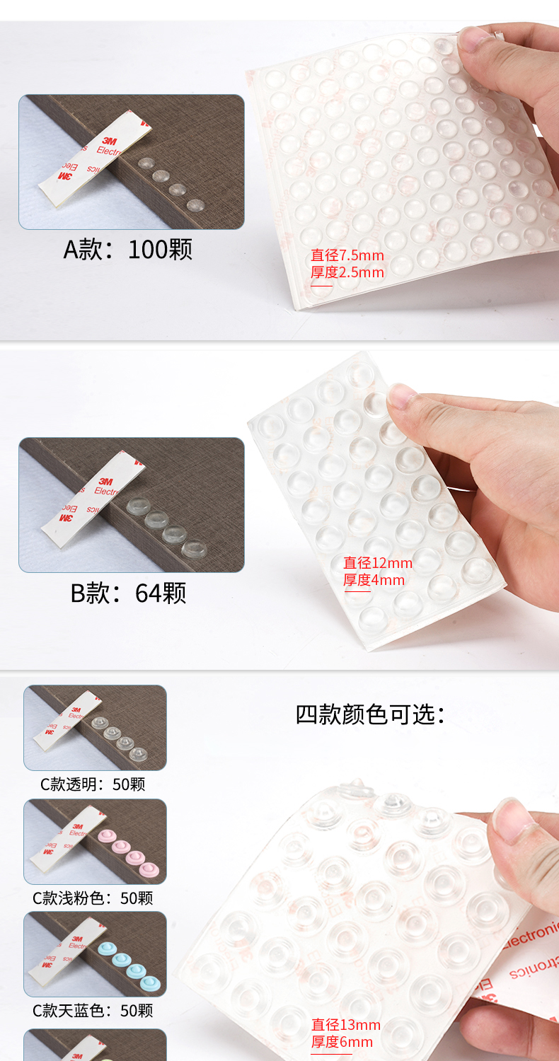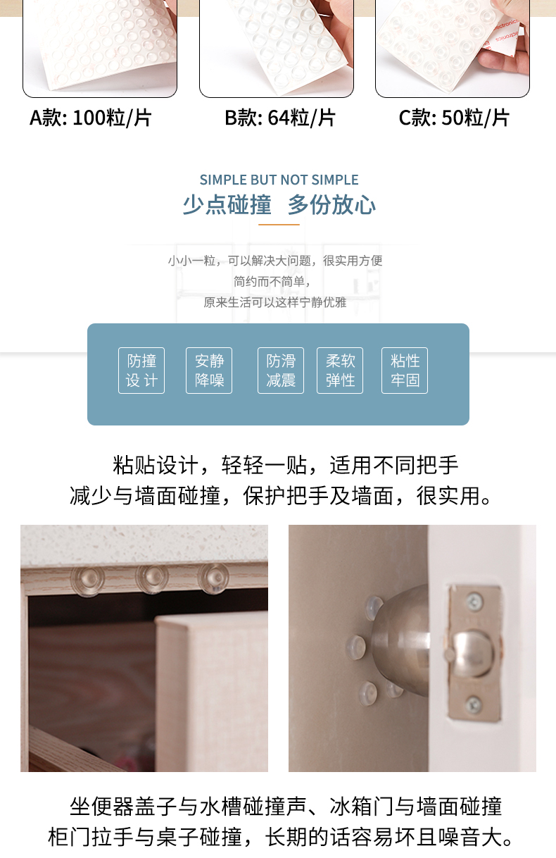 硅胶材质,环保无异味,防撞减震,消音降噪,3M背胶,粘性好不易脱落,耐用持久,门后/橱柜/马桶等都可用,小小一粒解决大问题!【赠运费险】