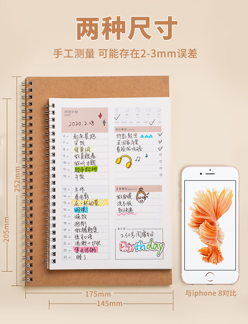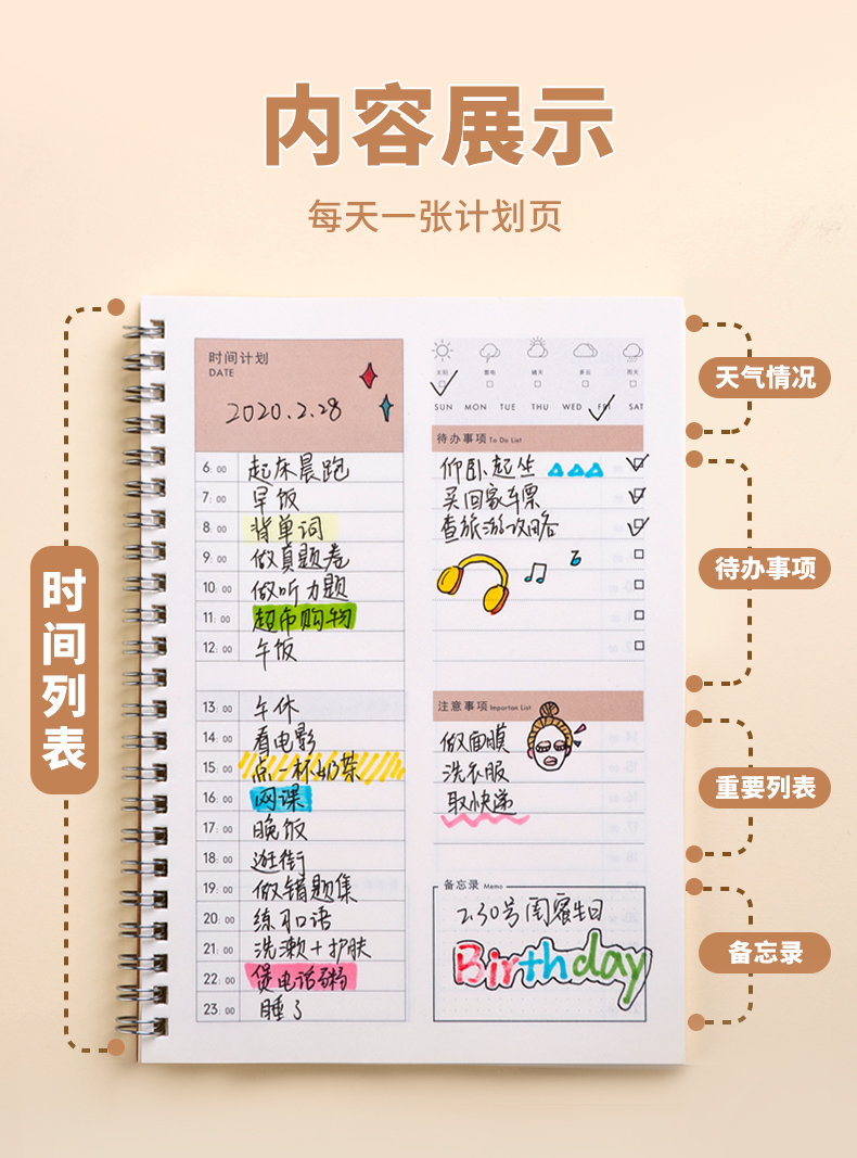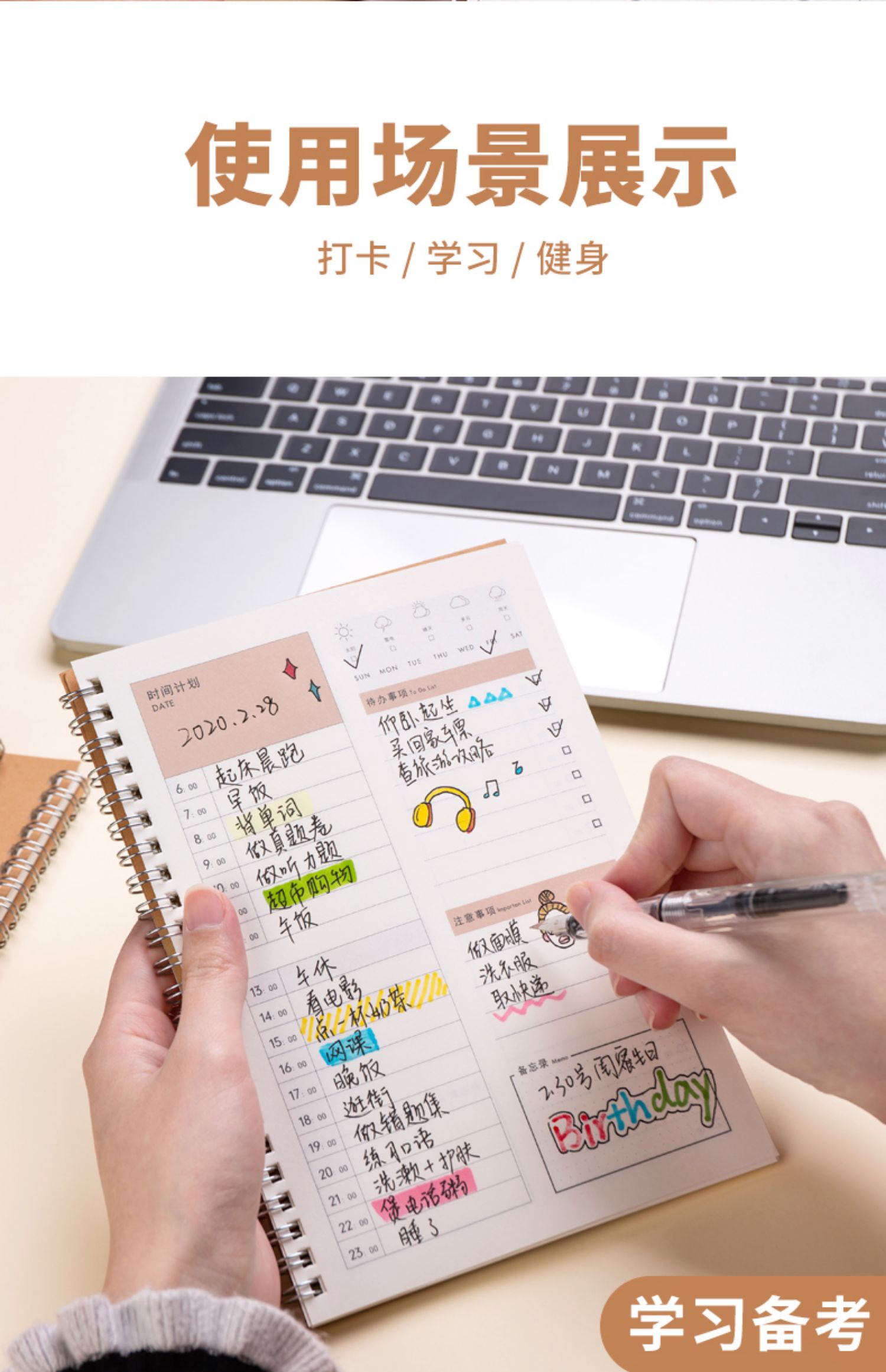 自律打卡,每日时间管理,学习效率更高!手感与质感并存的优质料,做工考究,简约而不简单,品质看得见!