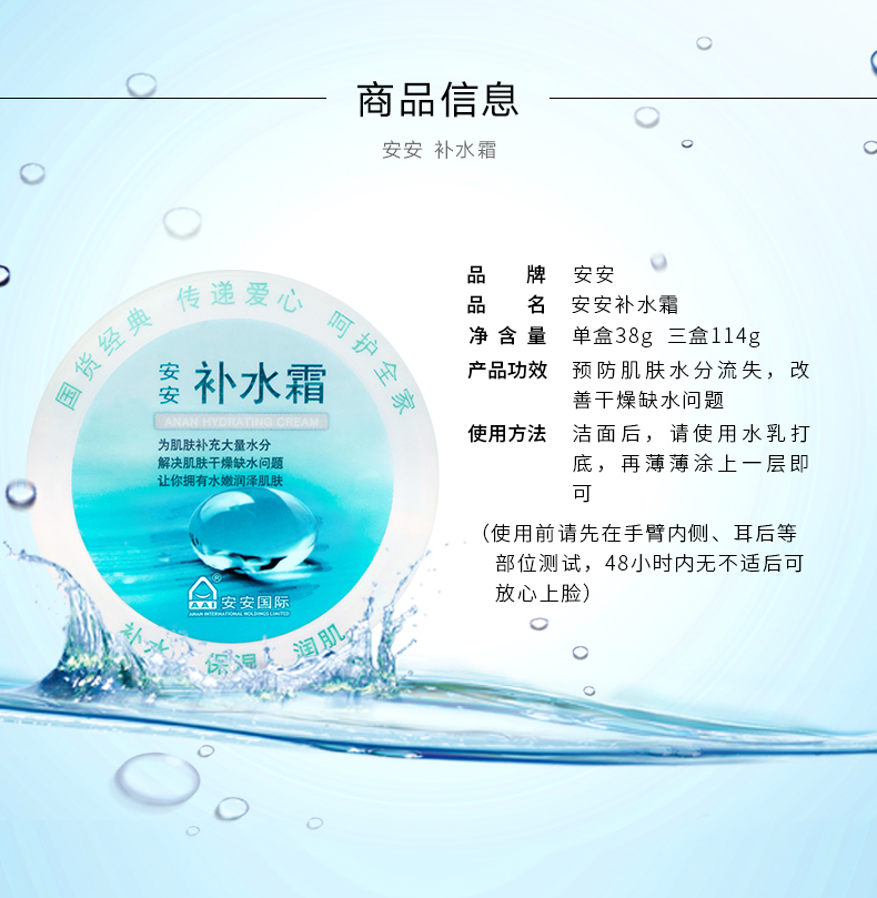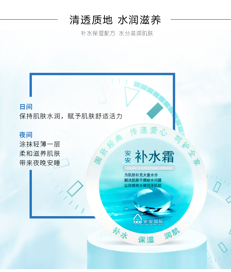 安安金纯保湿面霜,补水保湿,滋润乳冬季,防止干燥粗糙,美白亮肤,保湿补水,防止皮肤粗糙。