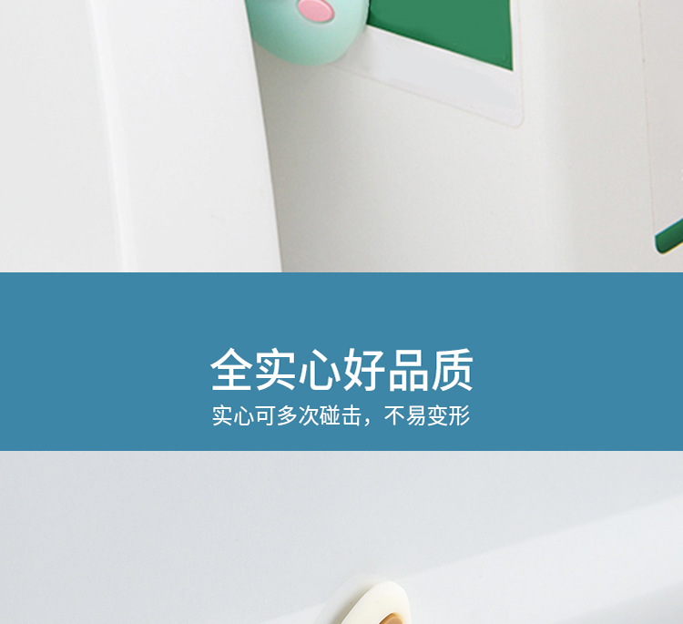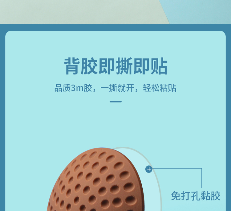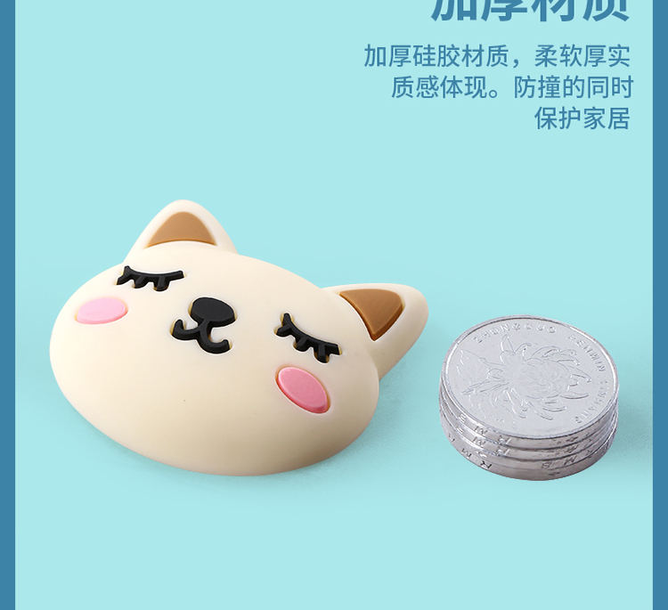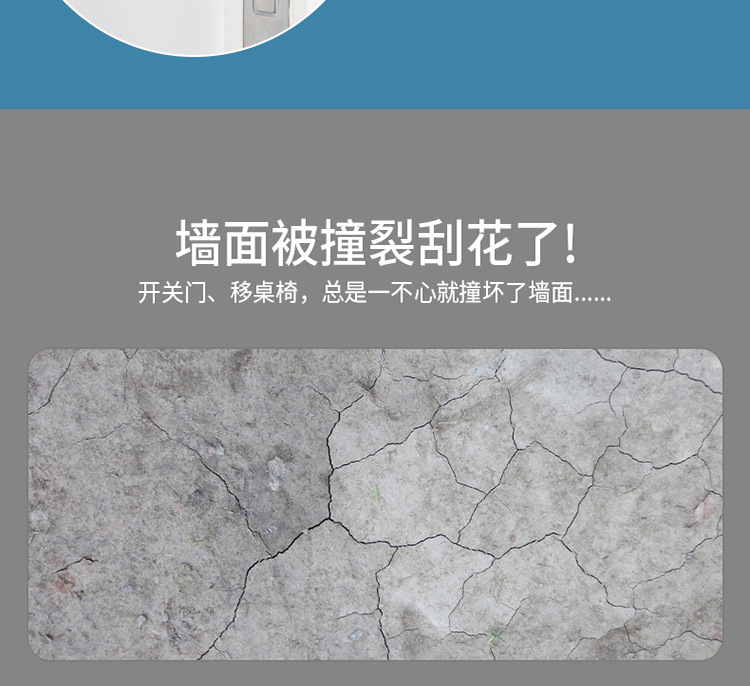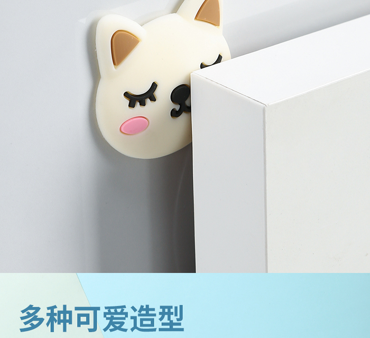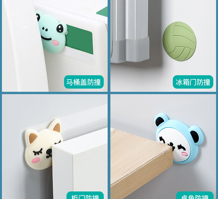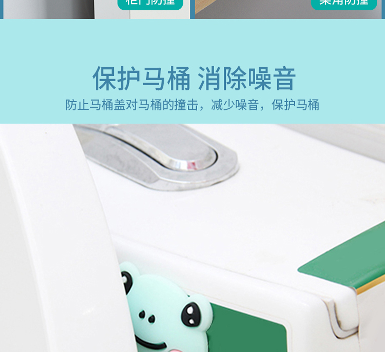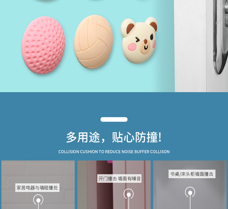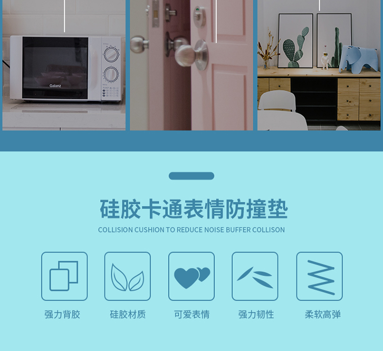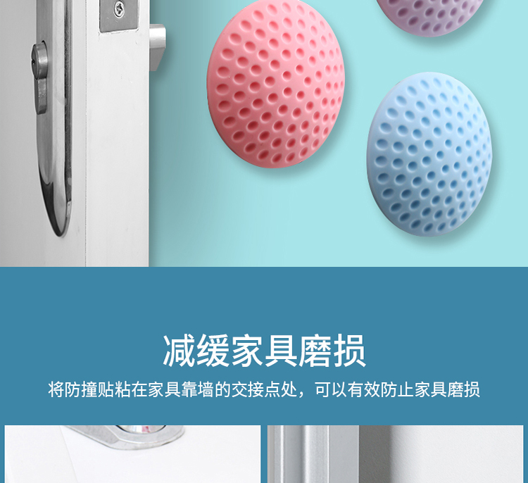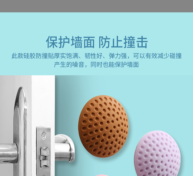 优选防震硅胶材质,韧性强、耐冲击,牢固不易掉,保护墙面,防撞、防刮、防噪音,门后/橱柜/马桶都可用