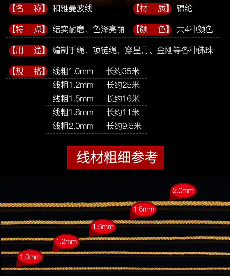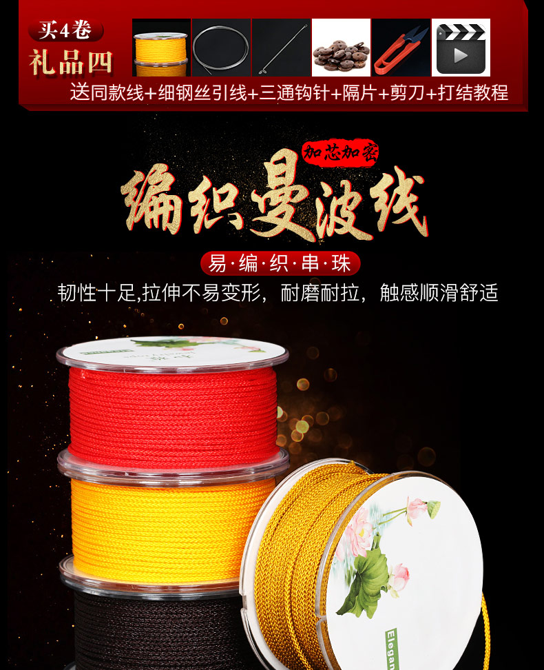 【全国包邮】加密曼波耐磨线,加芯加密编织,使劲拉扯也不变形!耐磨耐拉,触感顺滑舒适,不起毛,色泽好,送串珠引线+钩针,使用方便,适合自己DIY!