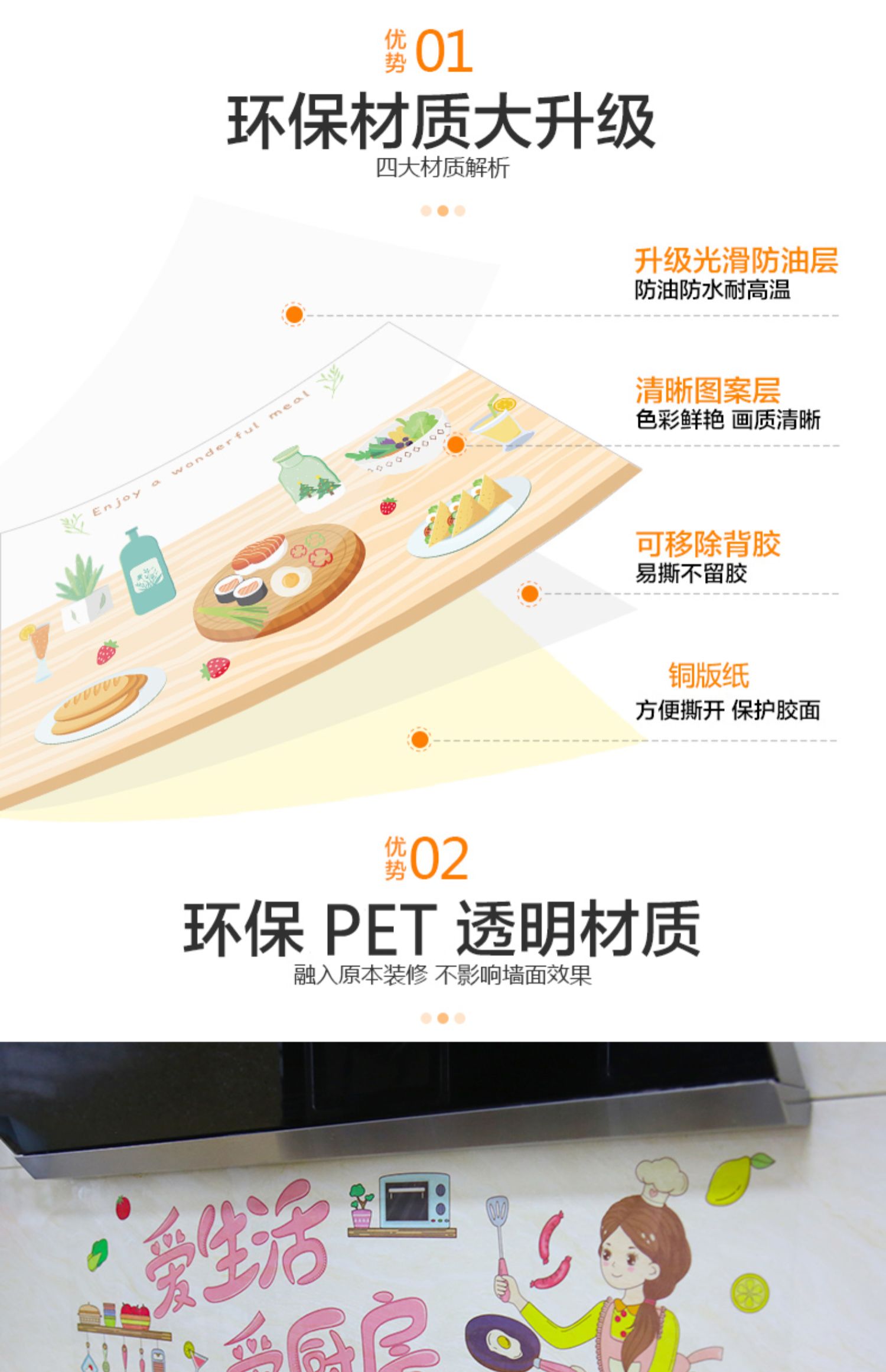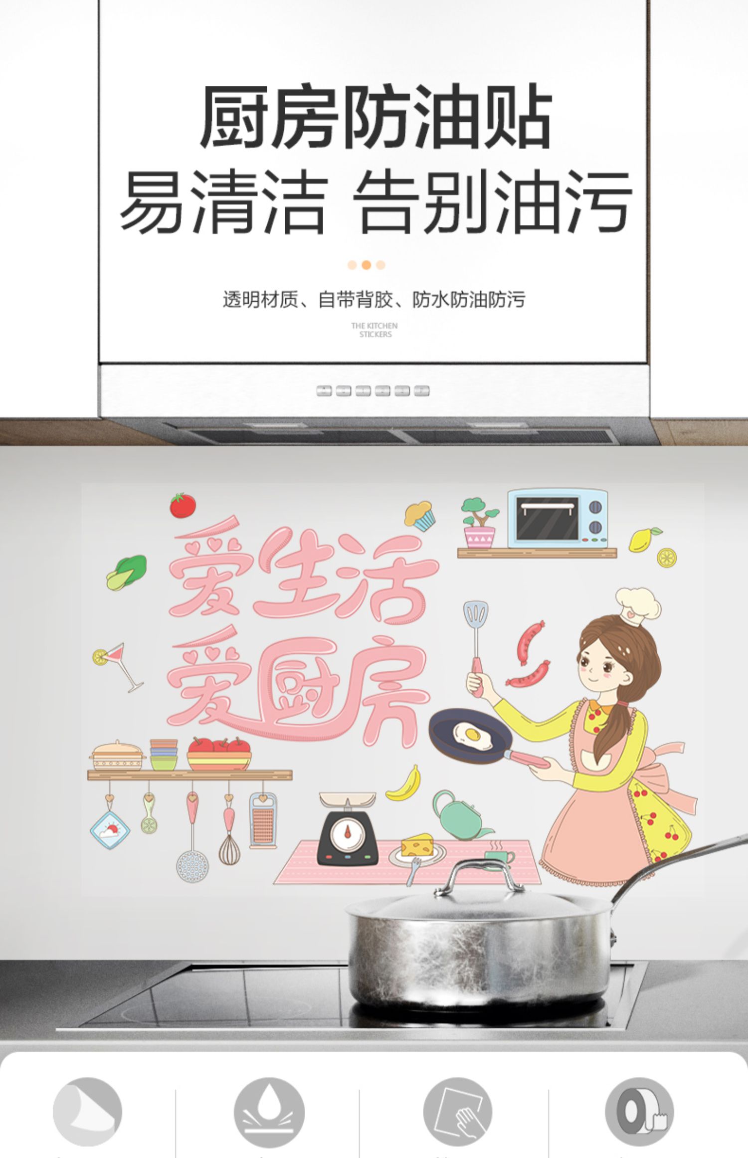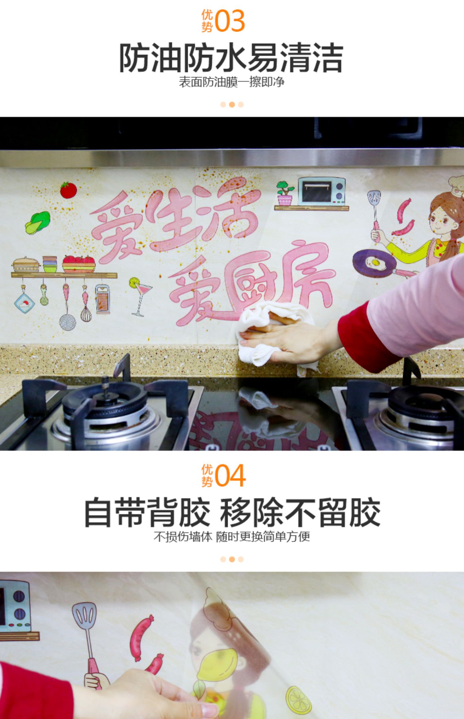 厨房超好看壁纸,选择我们轻松告别油渍,背面自带胶,粘贴更方便,不伤墙体,随时更换更简单。