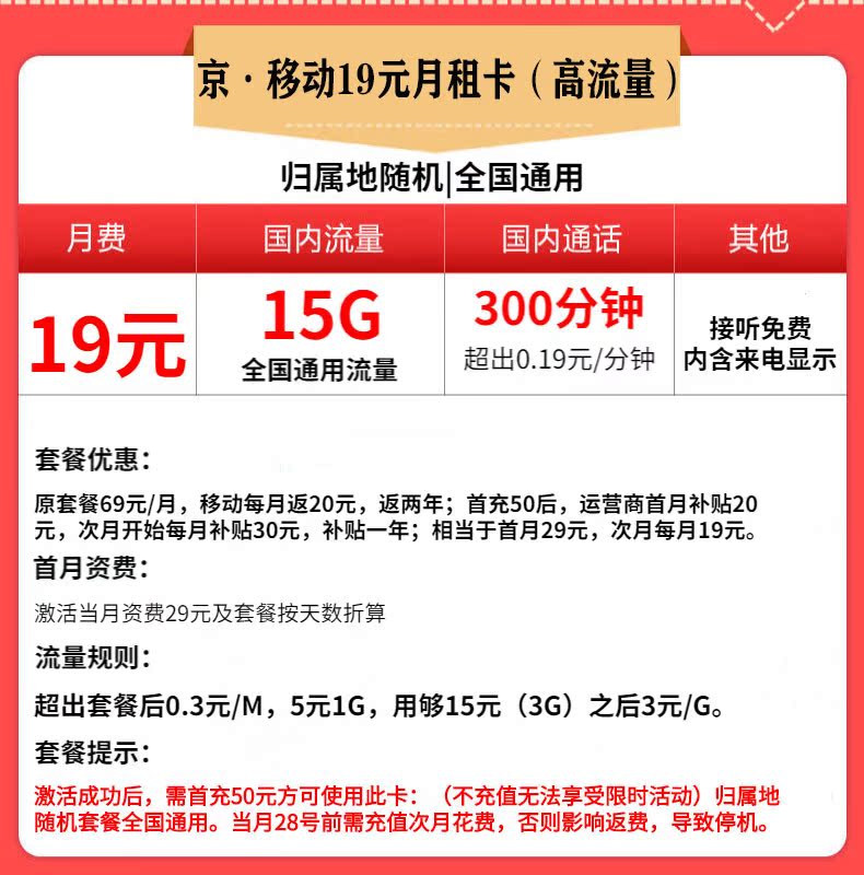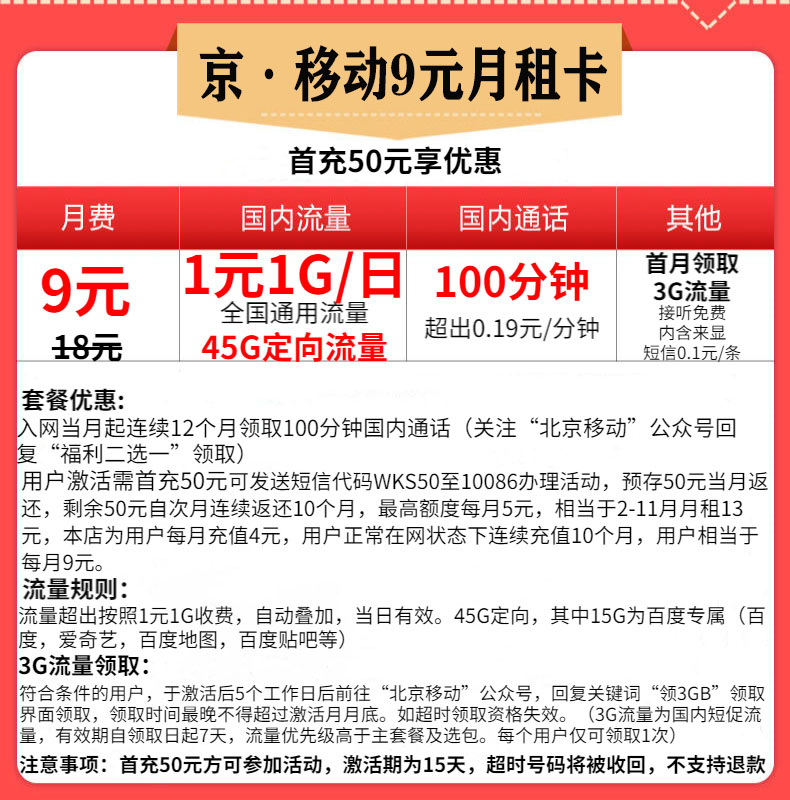 北京移动王卡手机卡,日租电话卡手机号码,首月体验,大流量电话卡!北京移动,大流量电话,首月体验,充50得100!