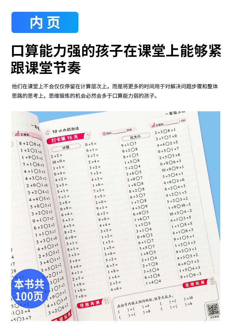 【每天100道/共10000道】彩绘人教版,每天一页,100道口算计时训练、坚持打卡,家长批改,记录孩子的用时、正确率,孩子改错,每日都有收获!宝妈速抢~【赠运费险】