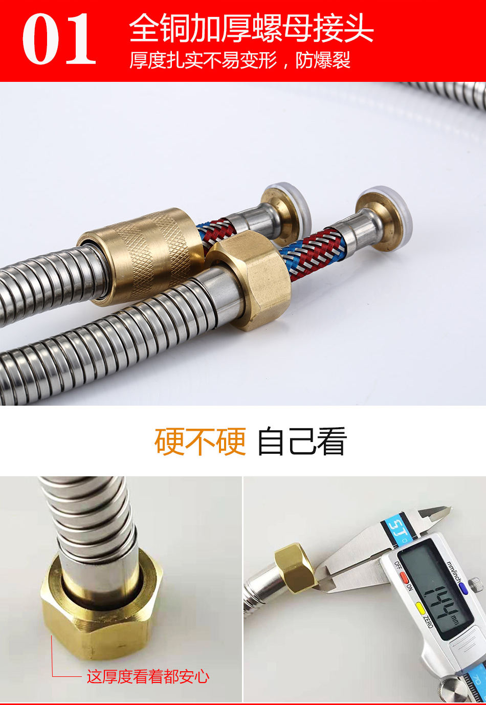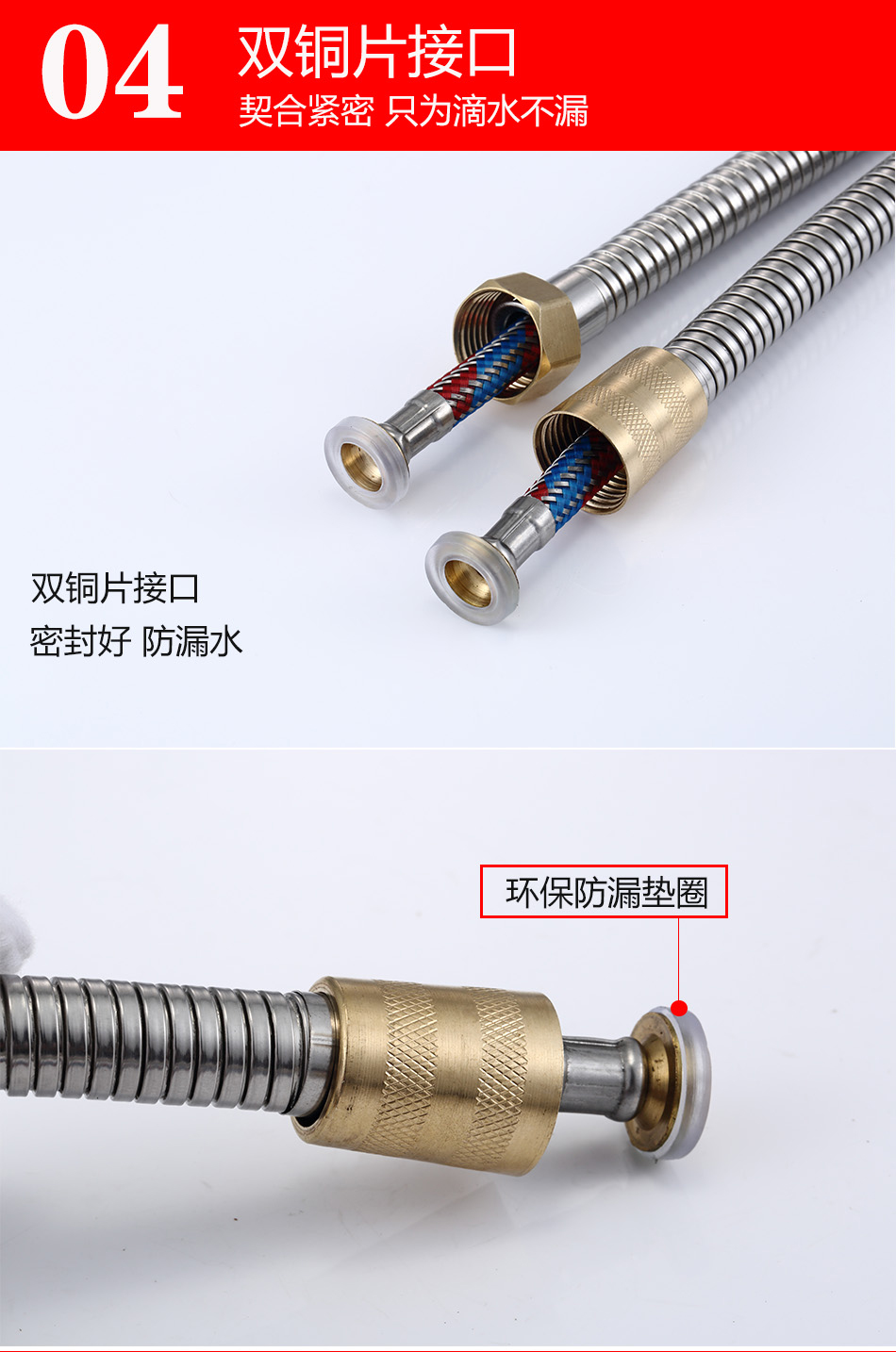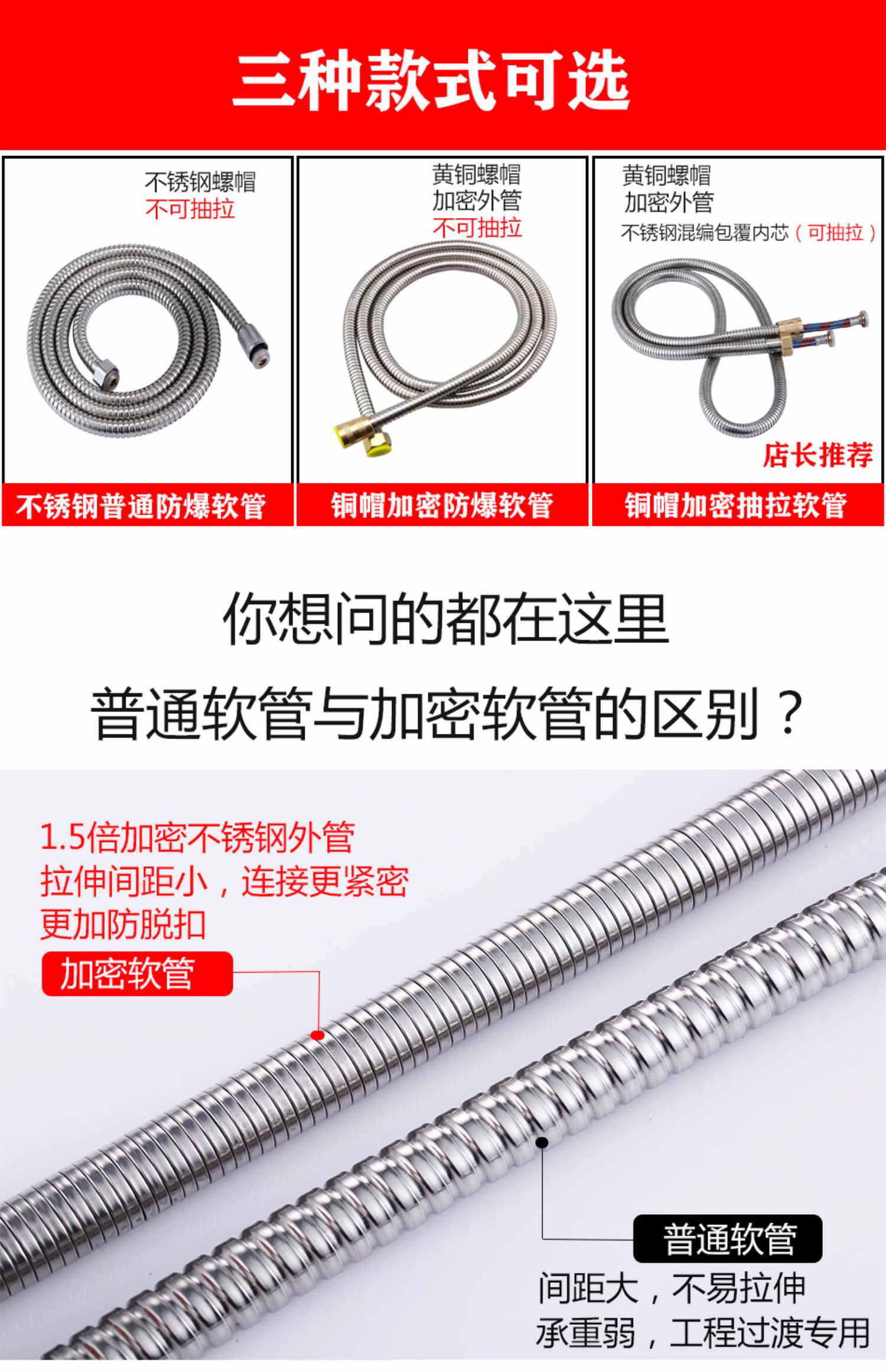 优质不锈钢加密管,防爆防脱扣,接口通用,双层内管,经久耐用。有质量有保证!快来抢购!